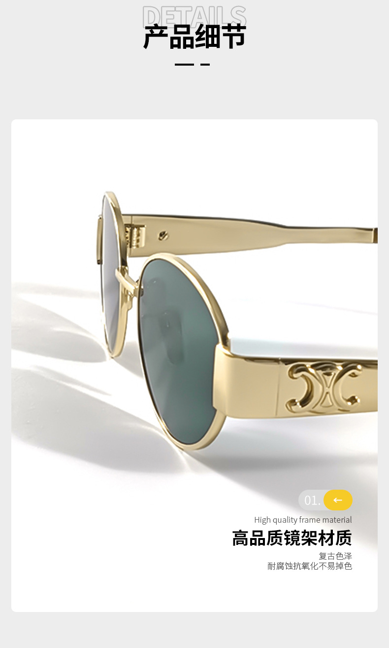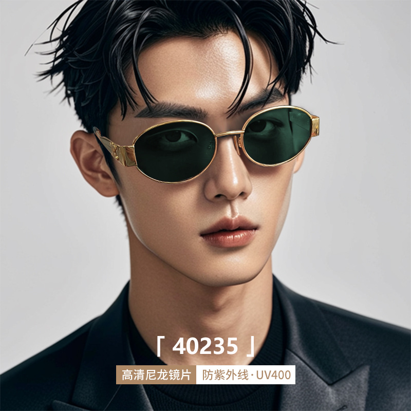 하이 버전 개선문 선글라스 여성 인터넷 연예인 같은 스타일 금속 작은 프레임 복고풍 독특한 선글라스 40235 타원형