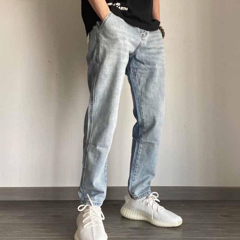 高街复古宽松直筒牛仔裤男浅色水洗做旧百搭潮流春季新款休闲长裤