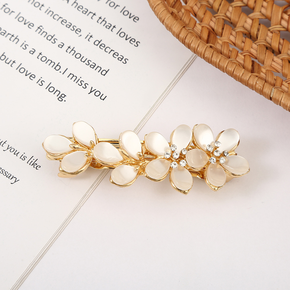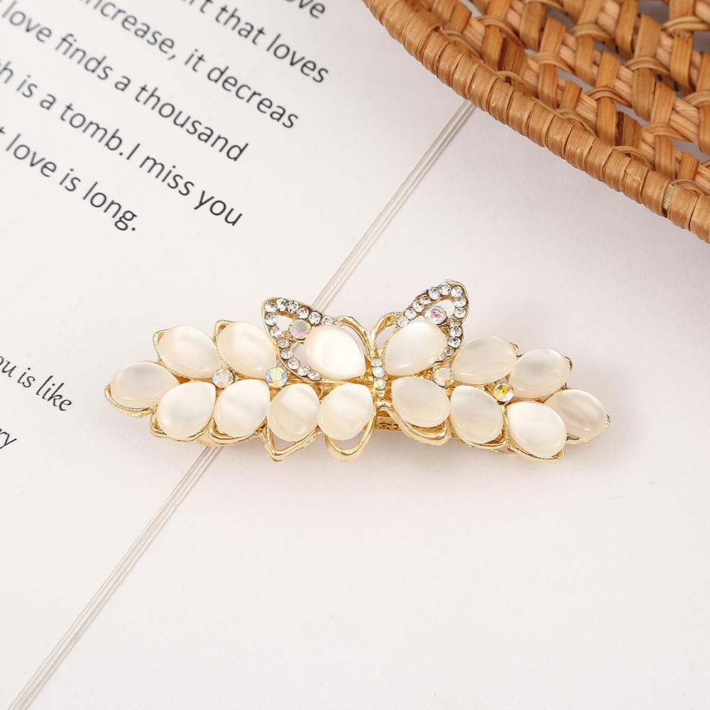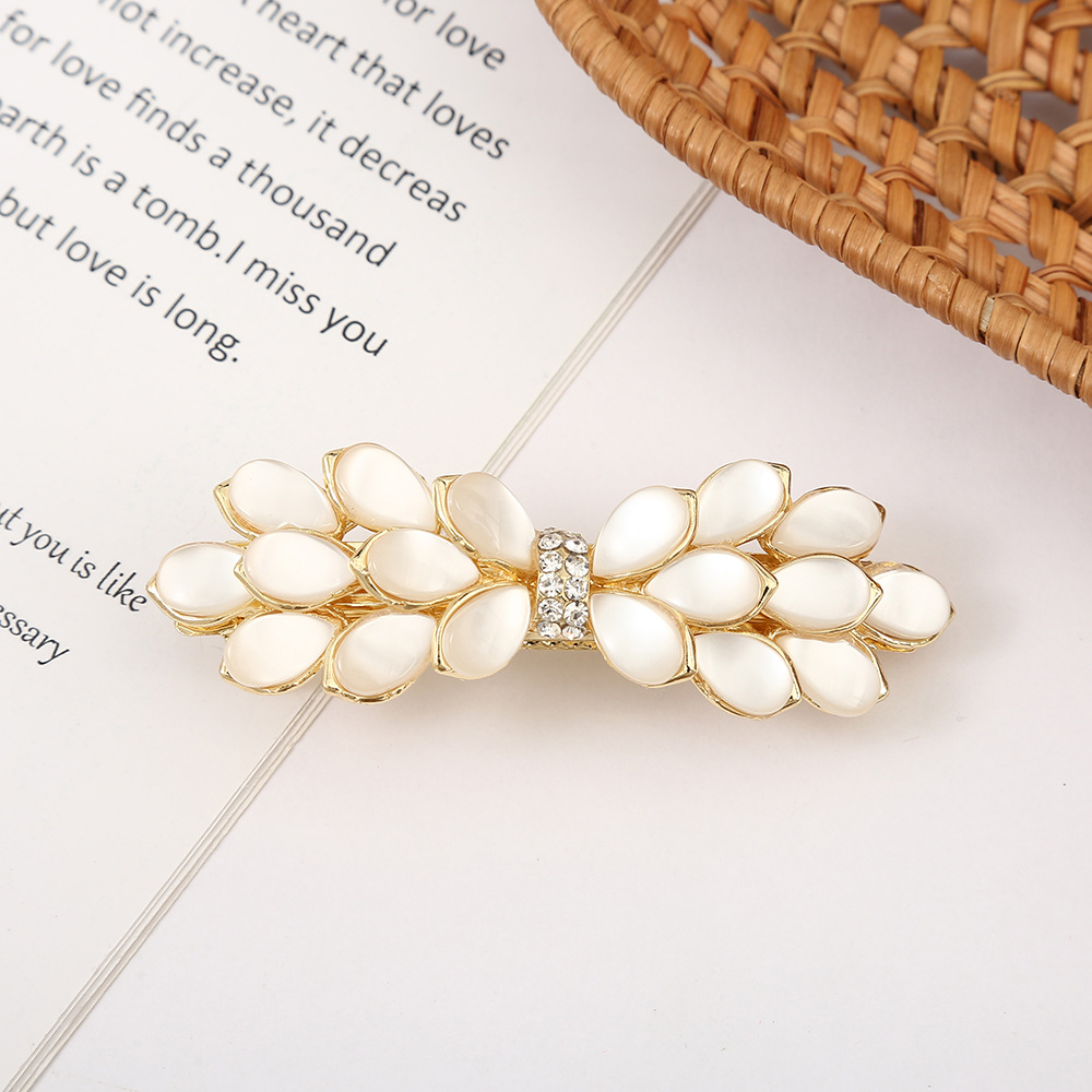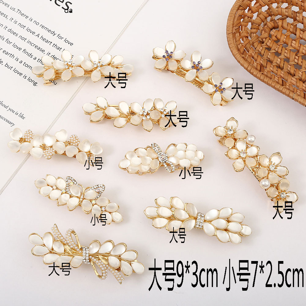 한국 대형 리본 꽃 머리핀 여성용 신상품 고양이 눈석 다이아몬드 장식 머리 장식 크리스탈 포니테일 클립 도매