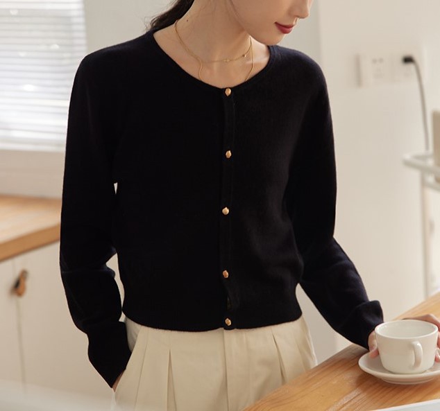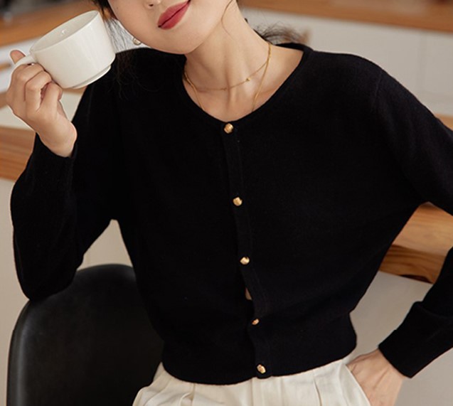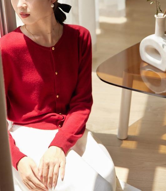 10 월 코트 프랑스 로맨틱 레이디 스타일 라운드 넥 골드 메탈 버클 짧은 빈티지 레드 작은 가디건스토어 가기