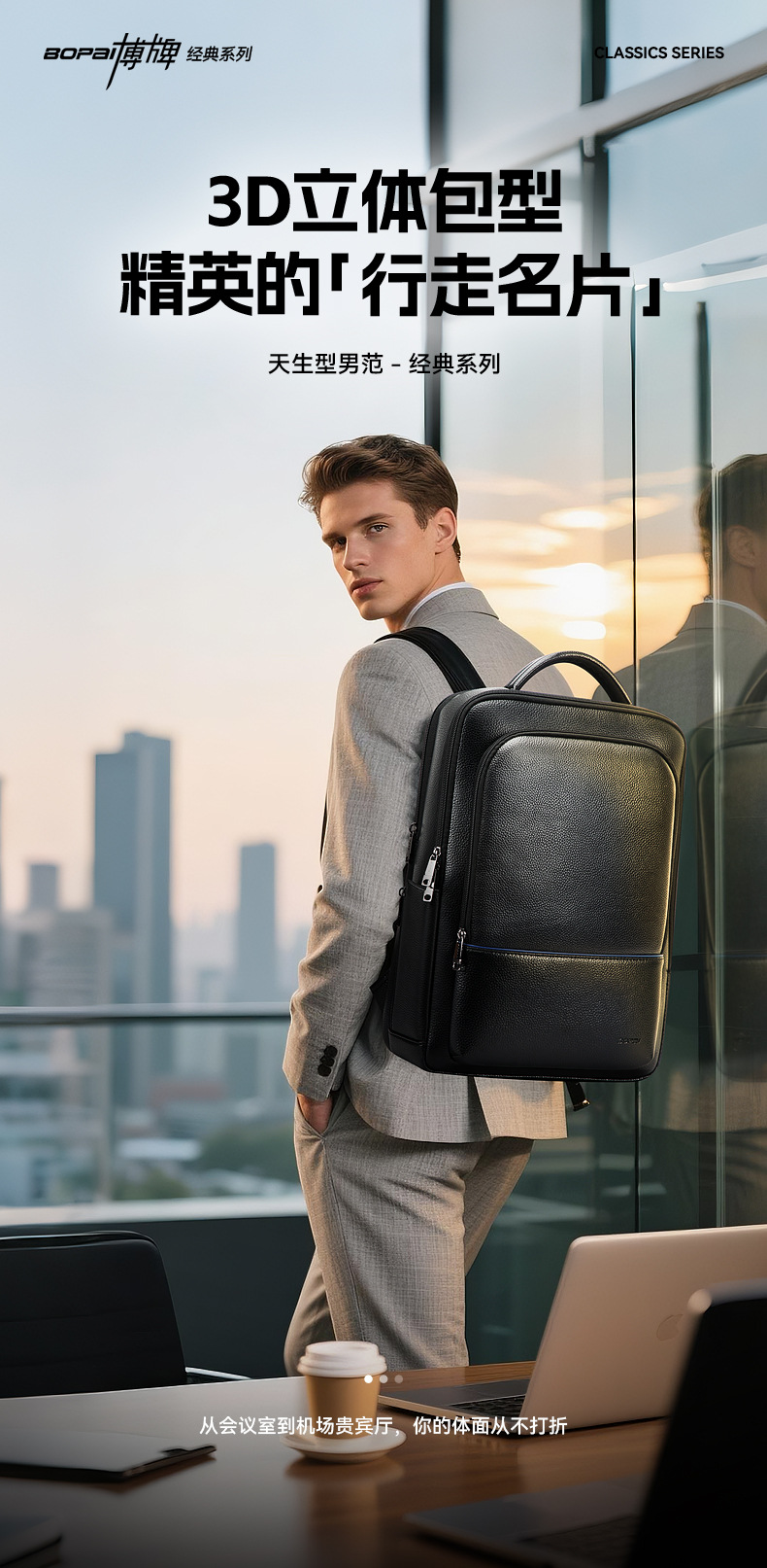 크로스보더 백팩, 비즈니스 통근용 가죽 남성용 컴퓨터 가방, 대용량 1층 소가죽 백팩, 보 브랜드 선물스토어 가기