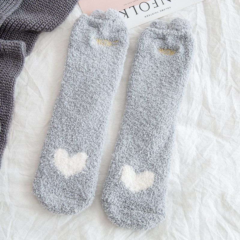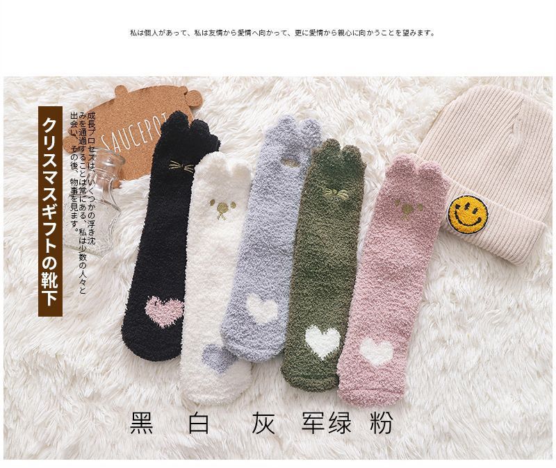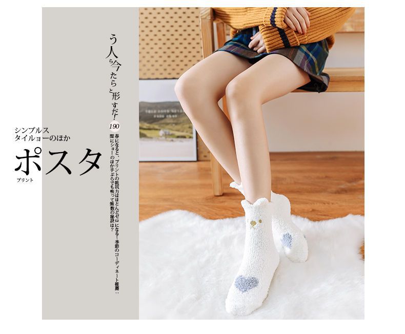 모피 양말 여자의 두꺼운 기모 산호 양털 잠자는 중간 길이 양말 가을과 겨울 사랑 바닥 양말스토어 가기