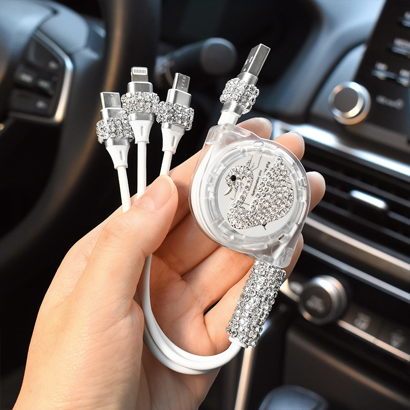 다이아몬드 박힌 자동차 데이터 케이블 쓰리인원 고속 충전 휴대폰 타입-C 충전기 케이블 개폐식 자동차 1 드래그 쓰리헤드스토어 가기