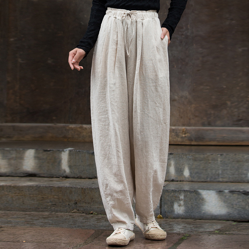 2024 봄과 여름 새로운 예술적 레트로 루즈 라미 코튼 샌드 워시 레이스 캐주얼 팬츠 무 바지 여성용 블루머스토어 가기