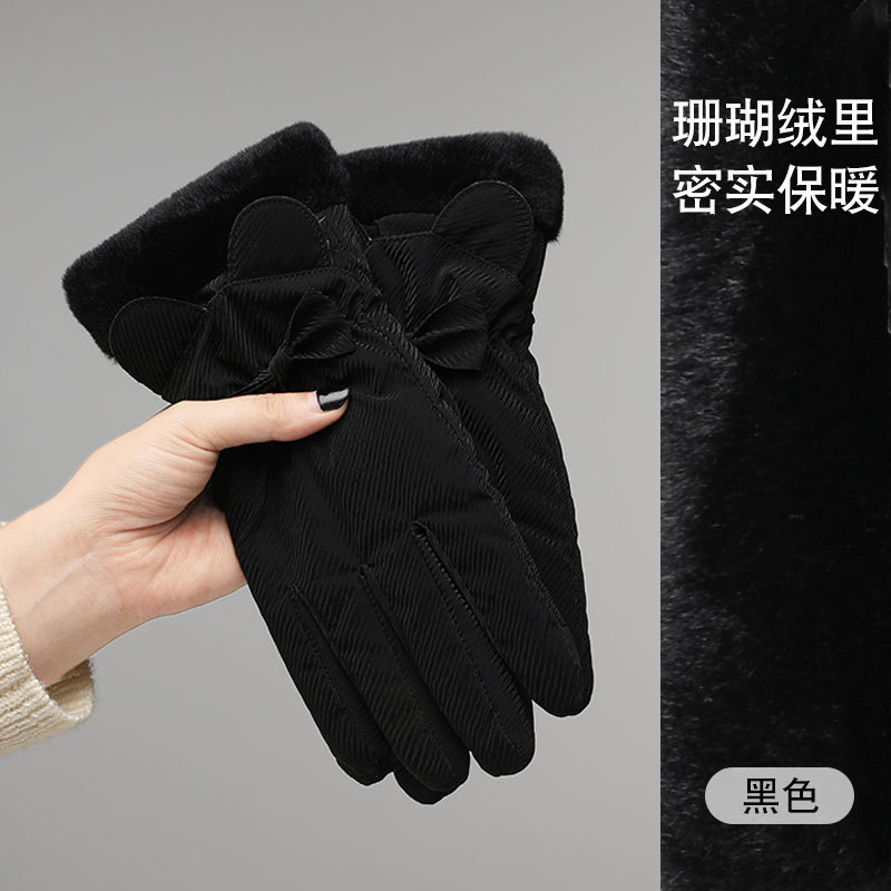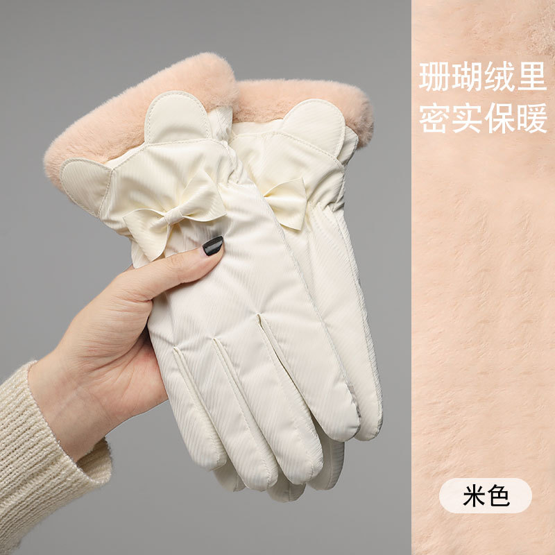 여성용 겨울 따뜻한 장갑, 벨벳, 미끄럼 방지, 면, 귀여운 한국 스타일, 학생용, 터치스크린, 방수 YR02