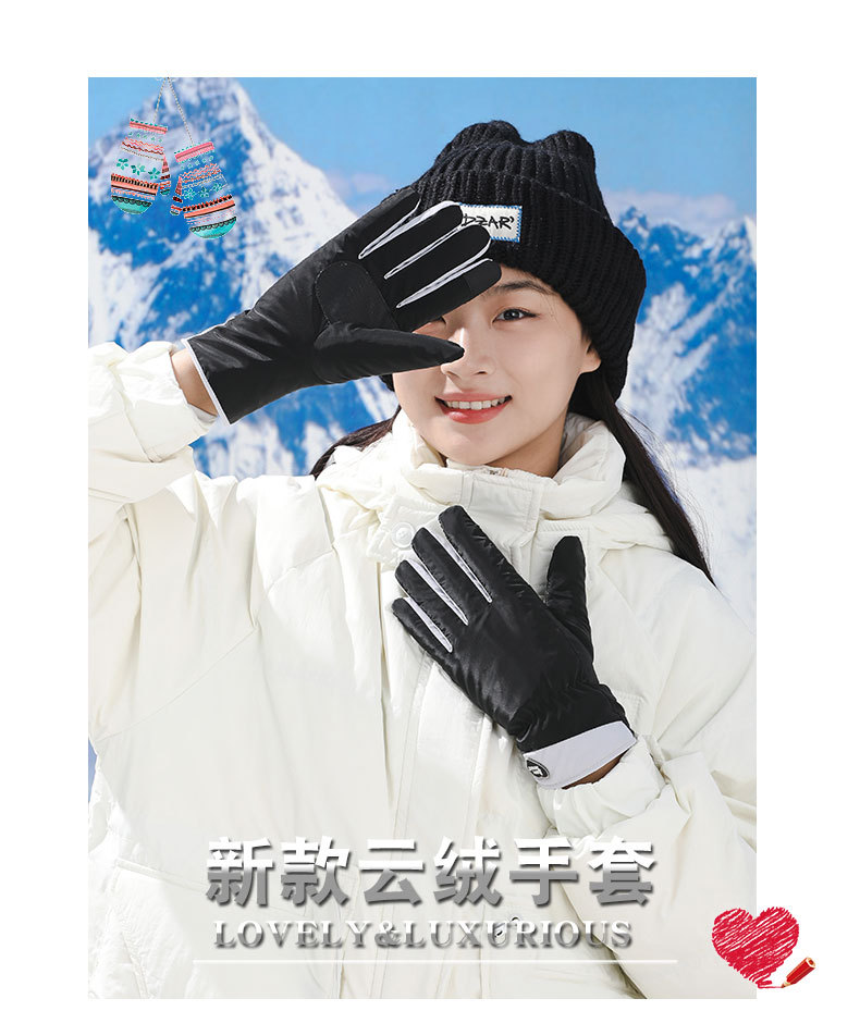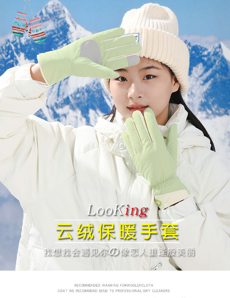 여성용 겨울 따뜻한 장갑, 벨벳, 미끄럼 방지, 면, 귀여운 한국 스타일, 학생용, 터치스크린, 방수 YR02스토어 가기