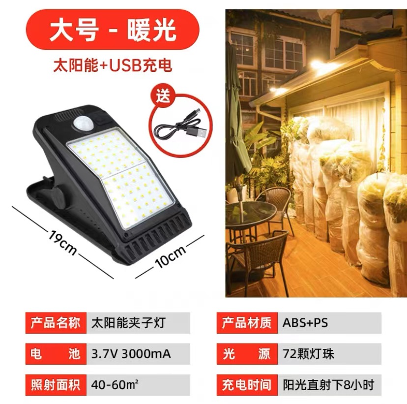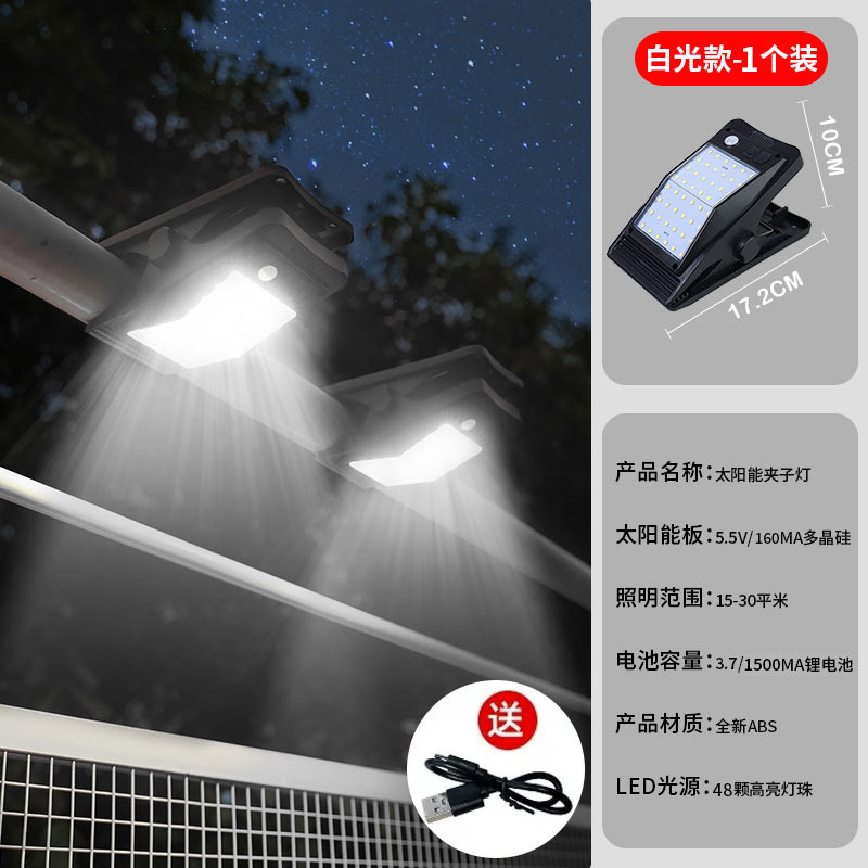 • 48led 스몰 사이즈 클립 램프 화이트 라이트 (태양 충전 + USB 라인 충전
