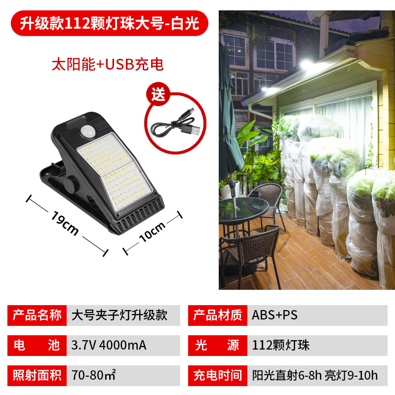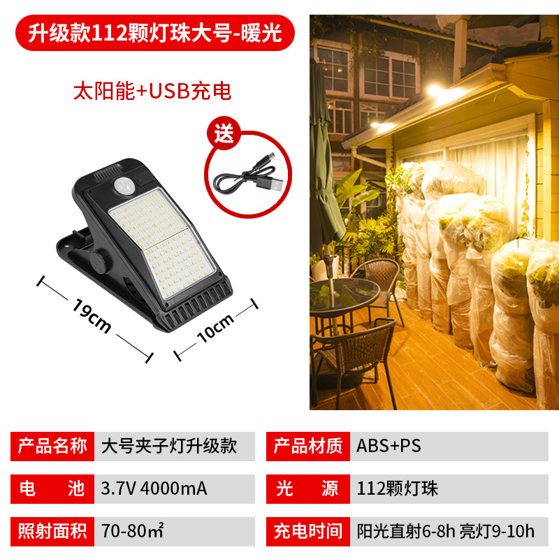 새로운 태양 휴대용 클립 조명 112LED 야외 안뜰 인체 유도 조명 정원 테라스 울타리 조명