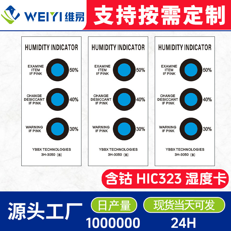 三点蓝色含钴湿度指示卡 30-40-50%精密芯片密闭包装湿度显示卡工厂按需定制