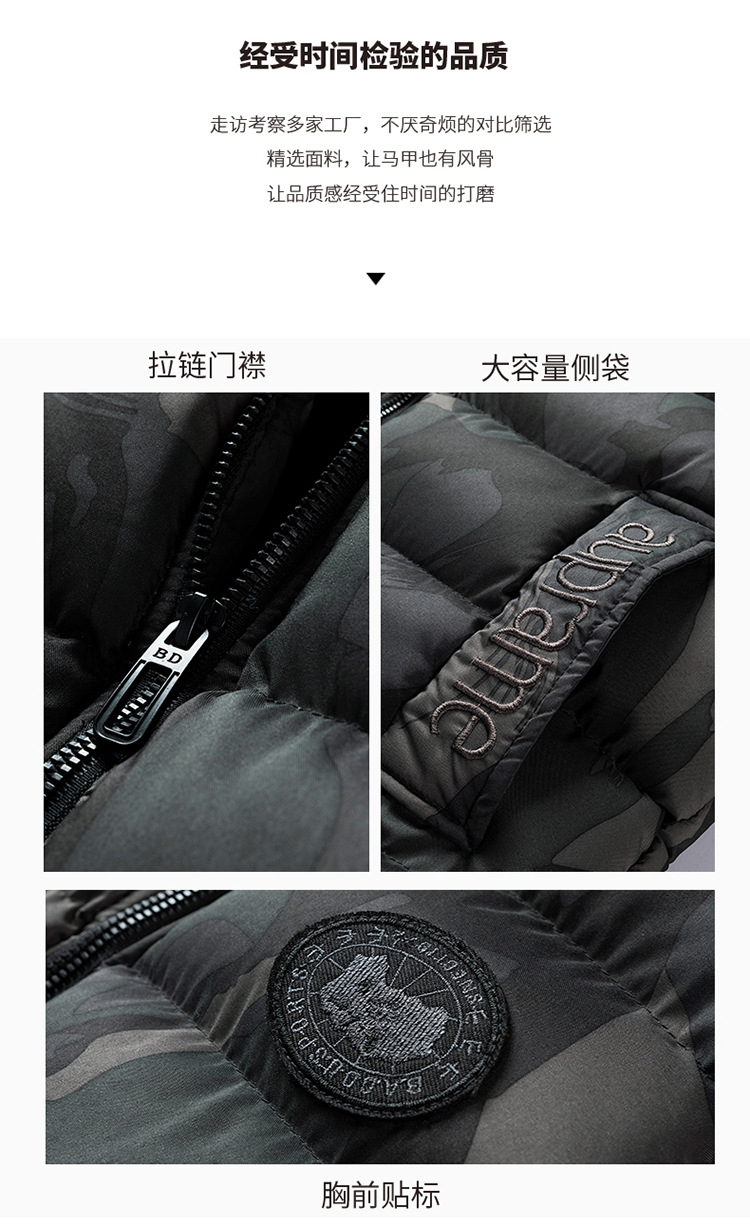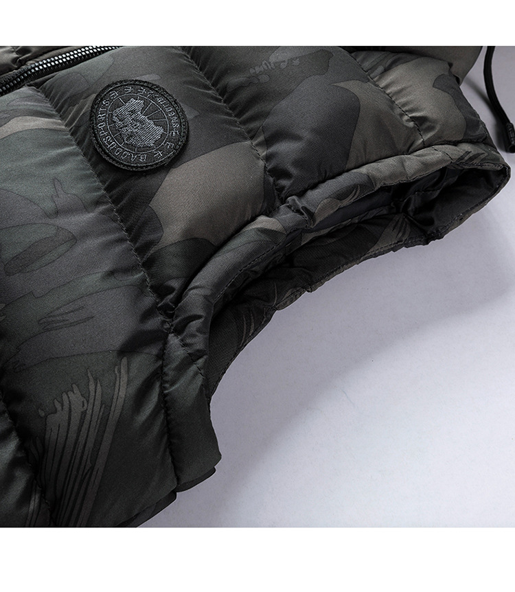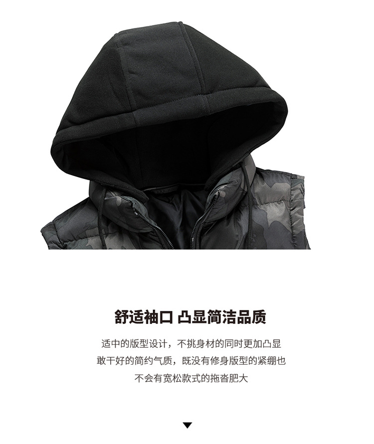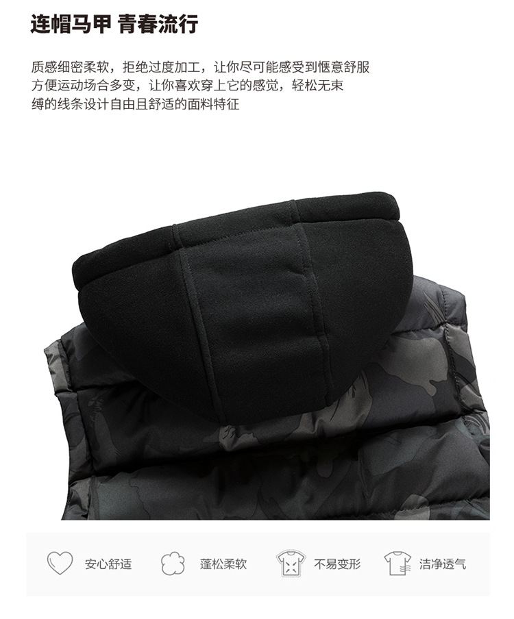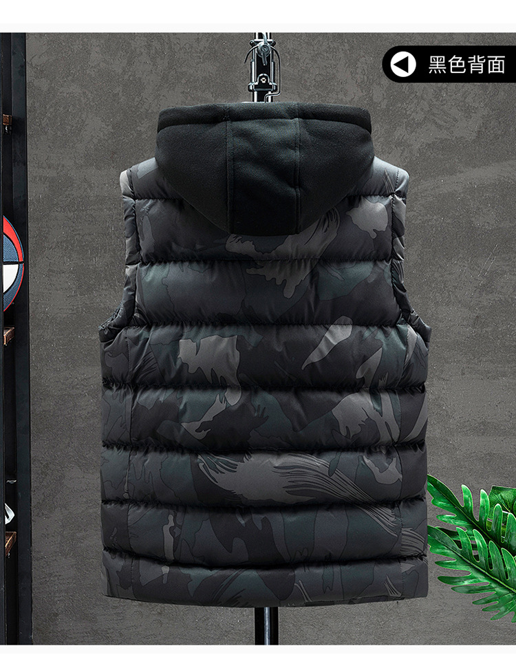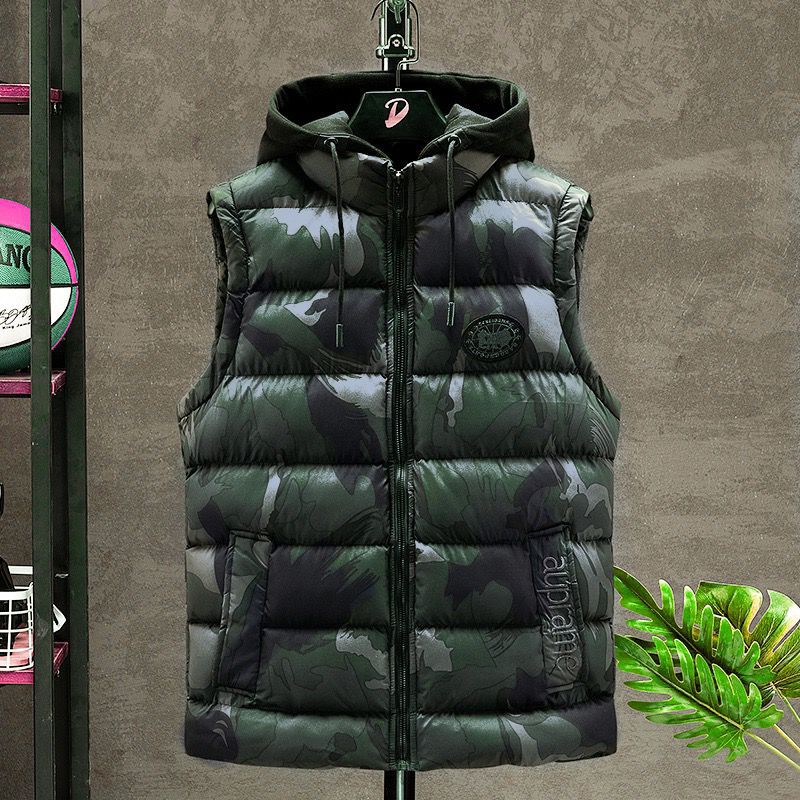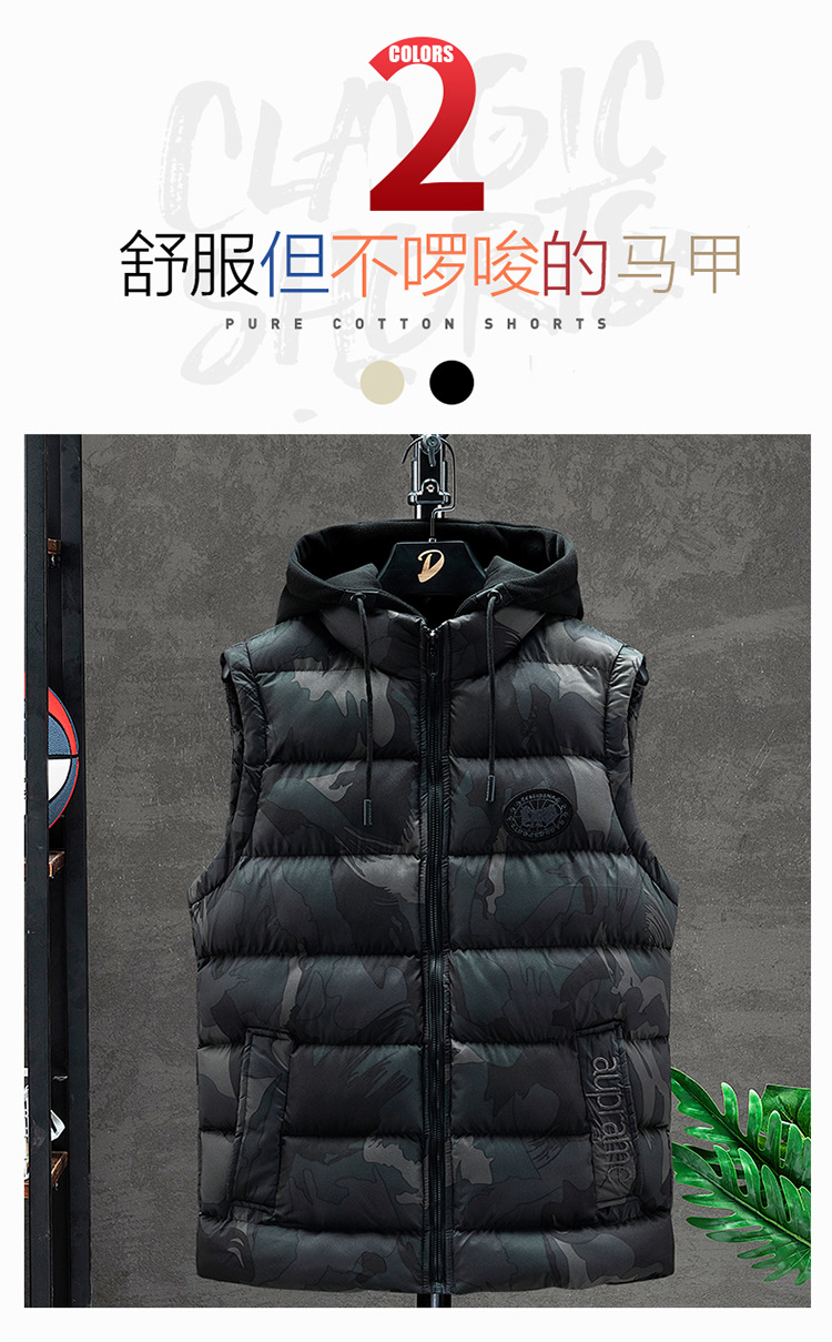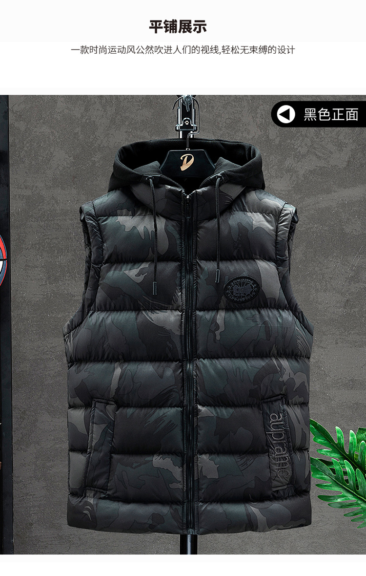 플러스 사이즈 남자의 가을과 겨울 새로운 다운 면 위장 조끼 한국 느슨한 기모 두꺼운 후드 캐주얼 재킷 유행스토어 가기