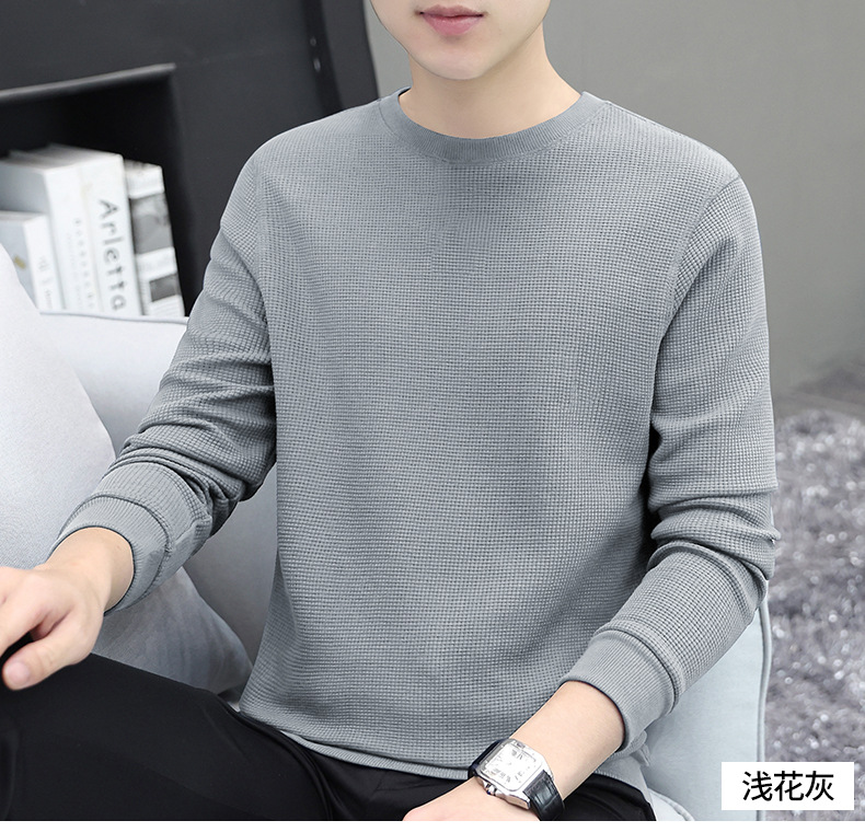 320g 헤비웨이트 와플 스웨트셔츠 긴팔 티셔츠 남성용 2025 가을 겨울 신상 트렌디 이너웨어 상의