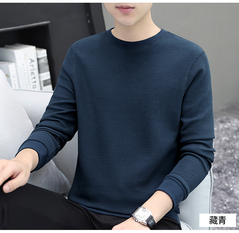 320g 헤비웨이트 와플 스웨트셔츠 긴팔 티셔츠 남성용 2025 가을 겨울 신상 트렌디 이너웨어 상의스토어 가기