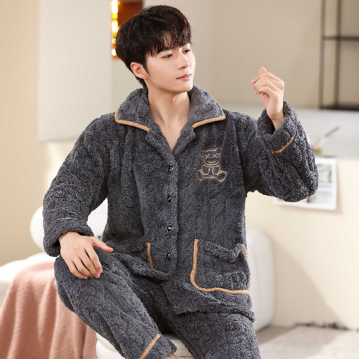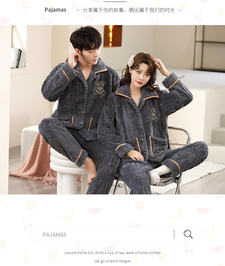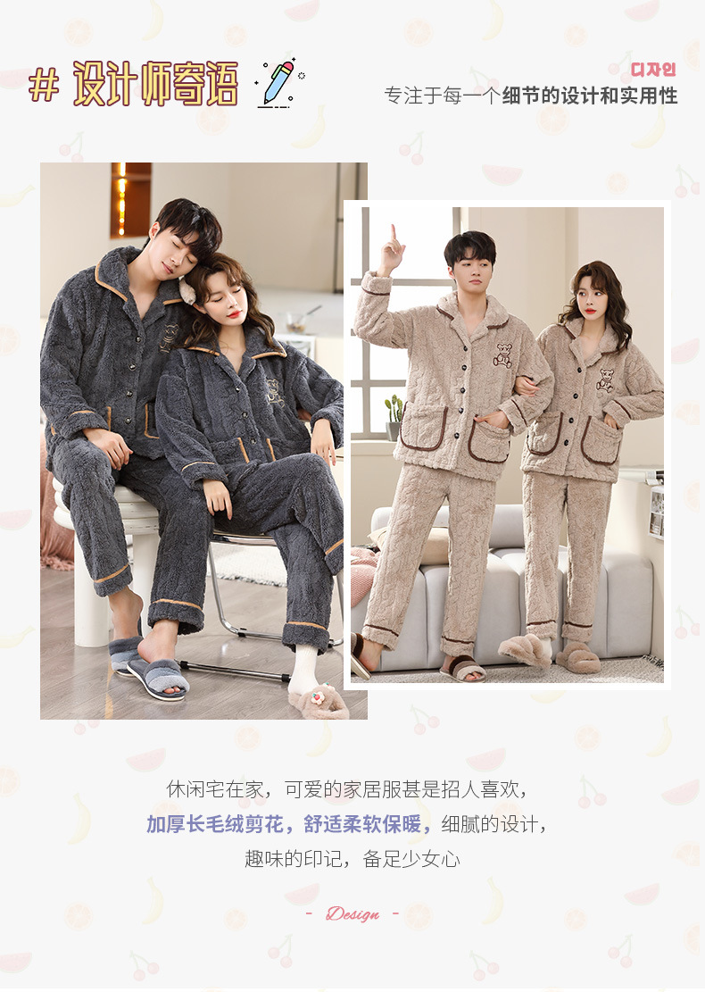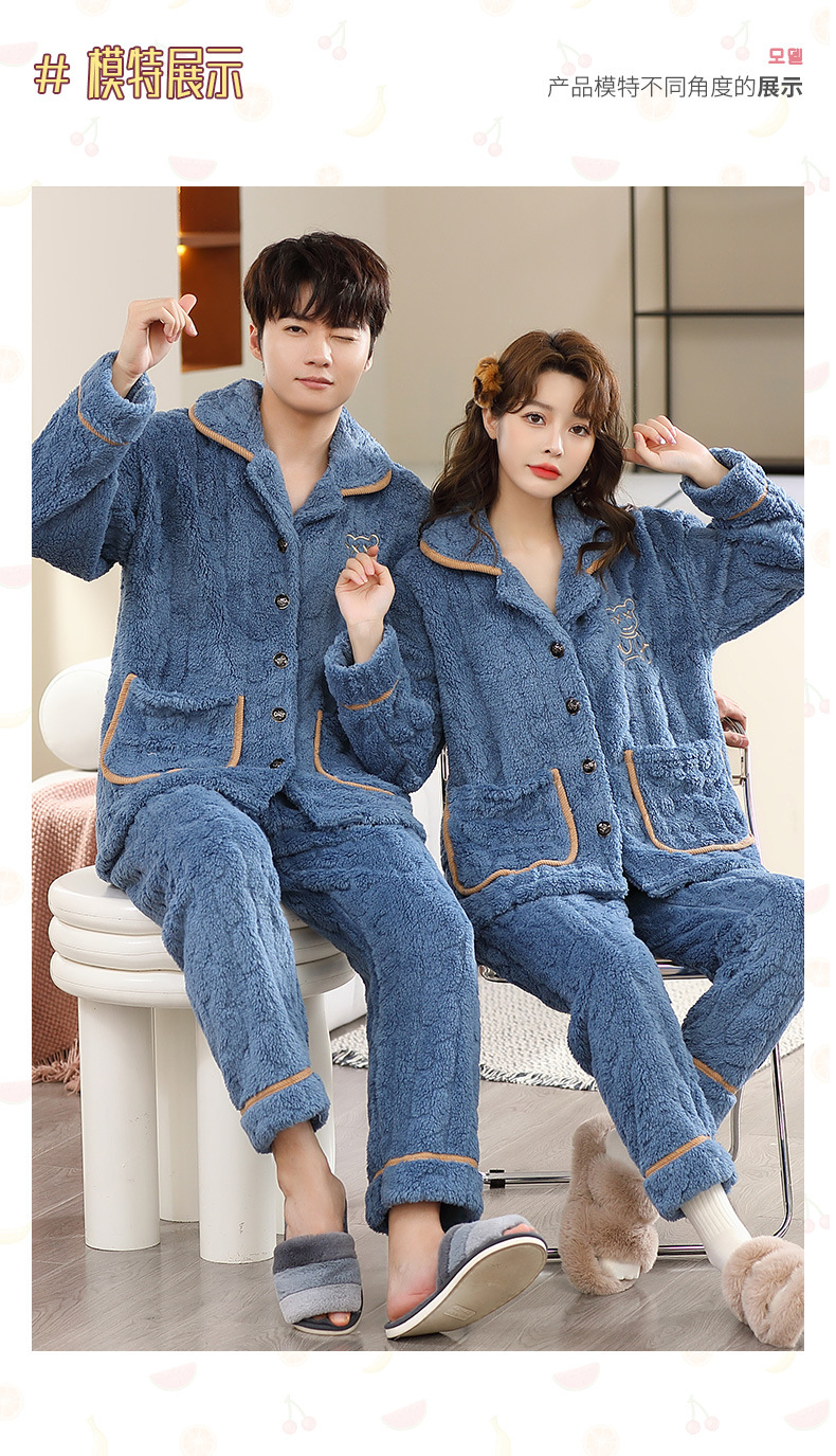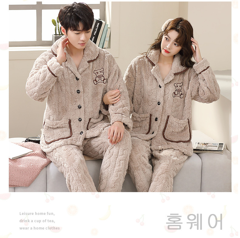 가을과 겨울 250kg 플러스 사이즈 산호 양털 커플 잠옷 여성 패딩 따뜻한 카디건 플란넬 남자의 가정 의류스토어 가기