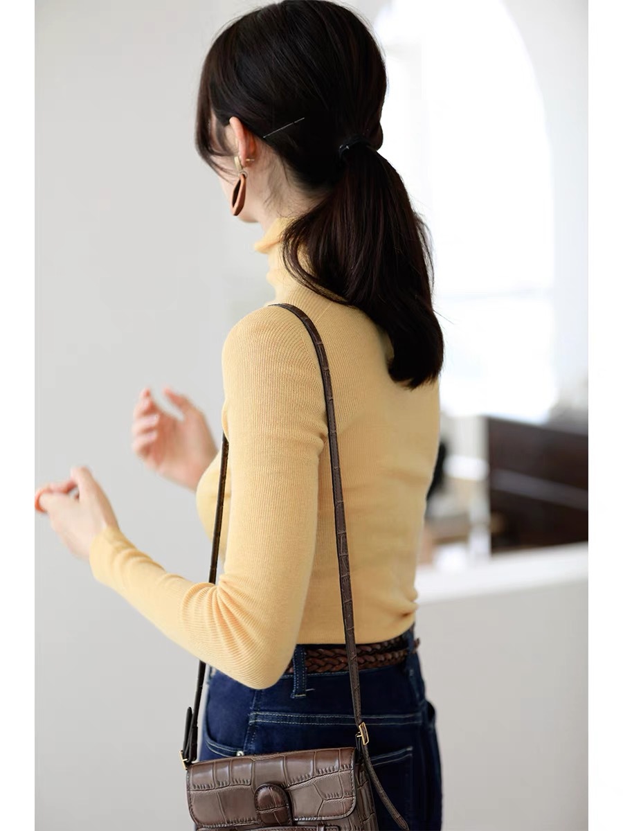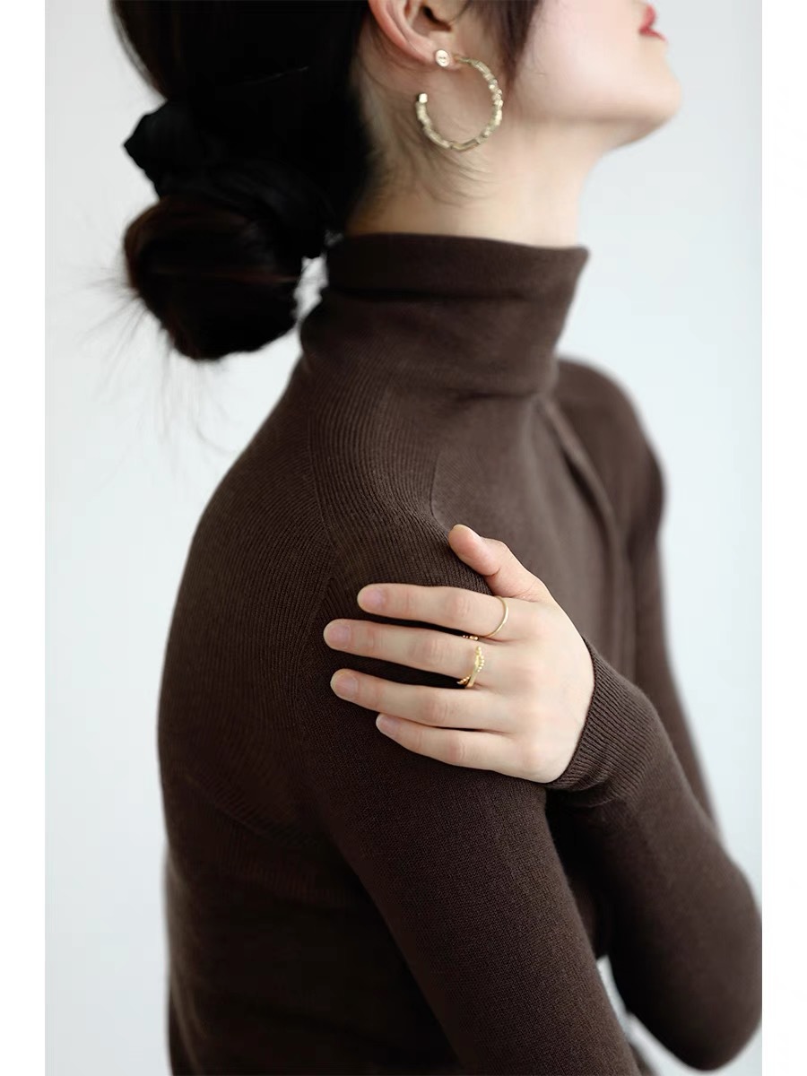 가을 겨울 신상품 무봉제 원피스 스웨터 여성용 하이넥 이너웨어 슬림핏 니트 스웨터스토어 가기