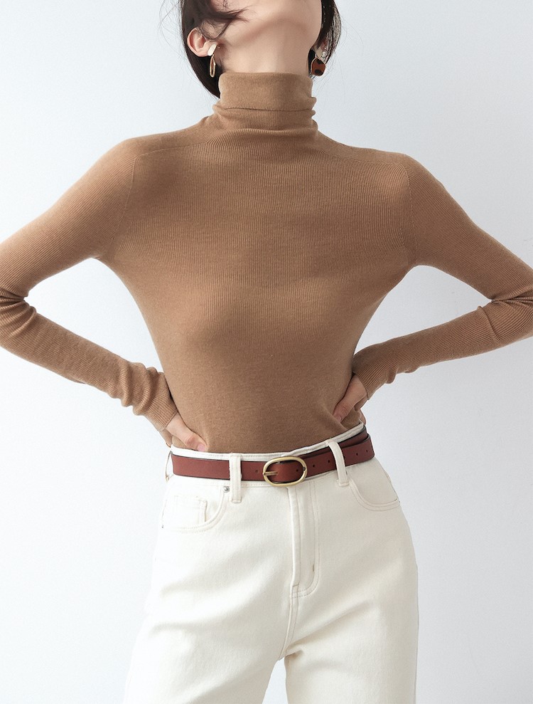 가을 겨울 신상품 무봉제 원피스 스웨터 여성용 하이넥 이너웨어 슬림핏 니트 스웨터