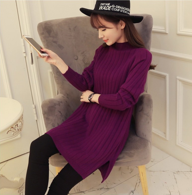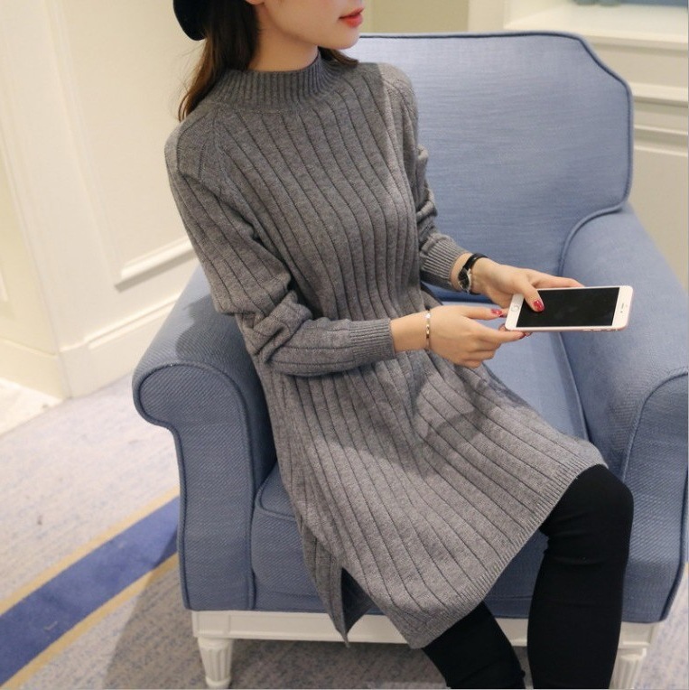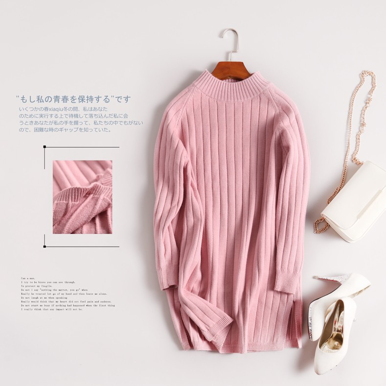 2025 새로운 가을 의류 한국 스타일 여성 스웨터 재킷 봄 중간 길이 하프 거북이 칼라 느슨한 풀오버 스웨터 스커트스토어 가기