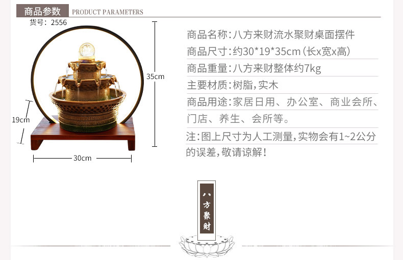 풍수 바퀴 행운의 실내 풍수 공 사무실 데스크탑 작은 순환 분수 거실 장식