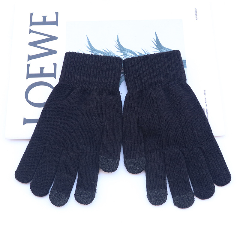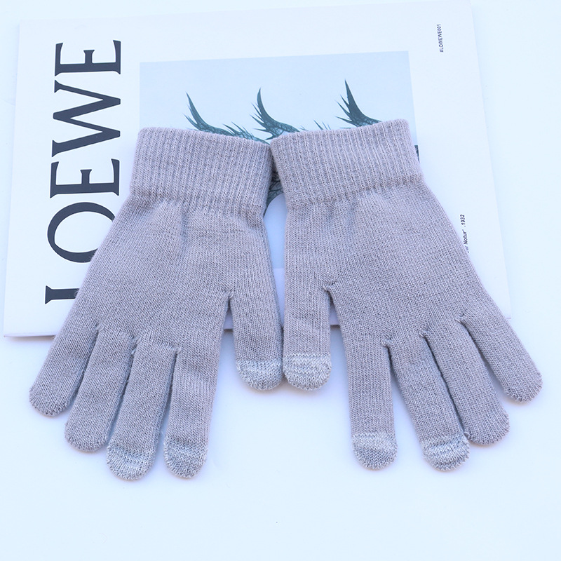 2023 니 따뜻한 새로운 간단한 단색 겨울 장갑 야외 겨울 기모 터치 스크린 니트 따뜻한 장갑 도매