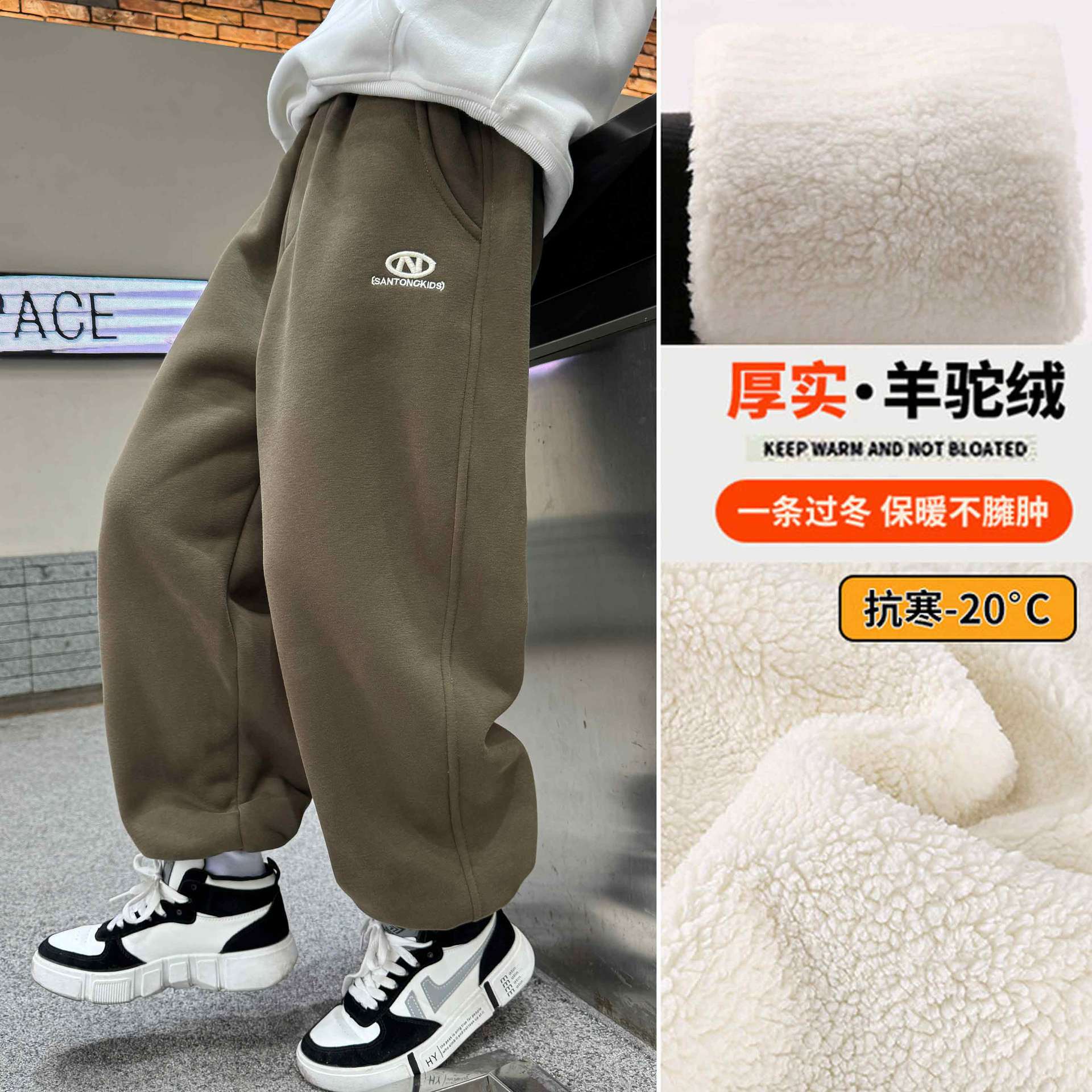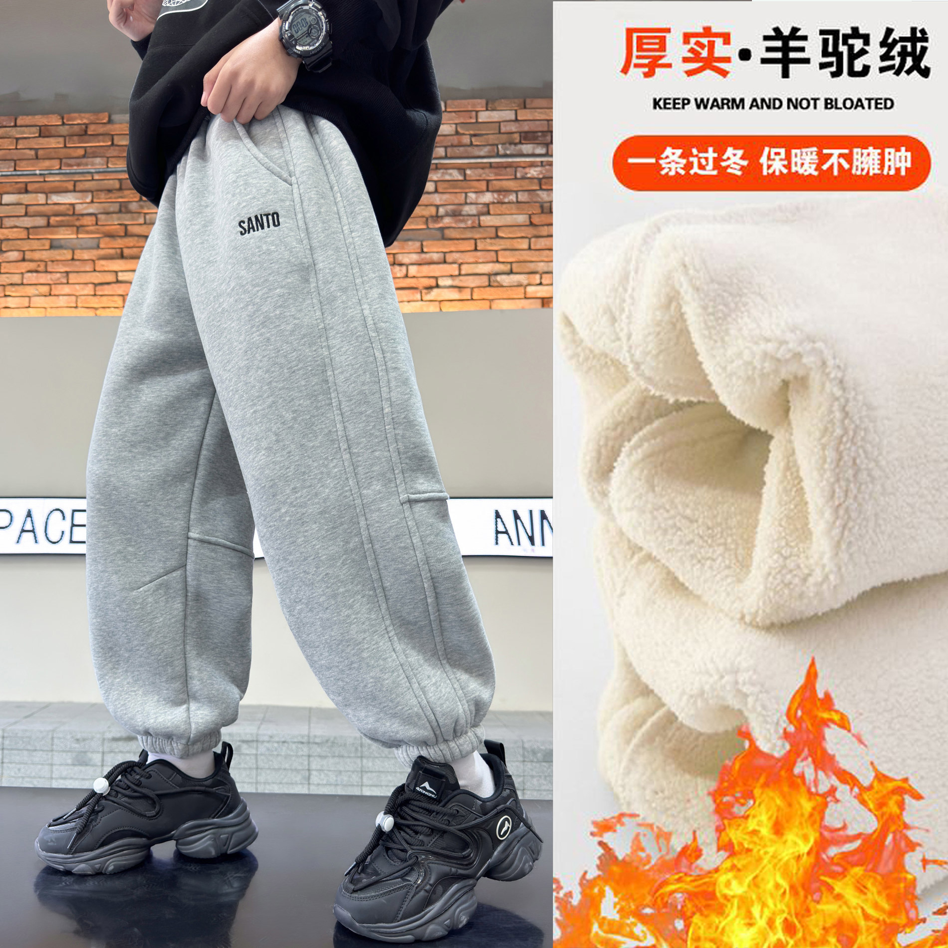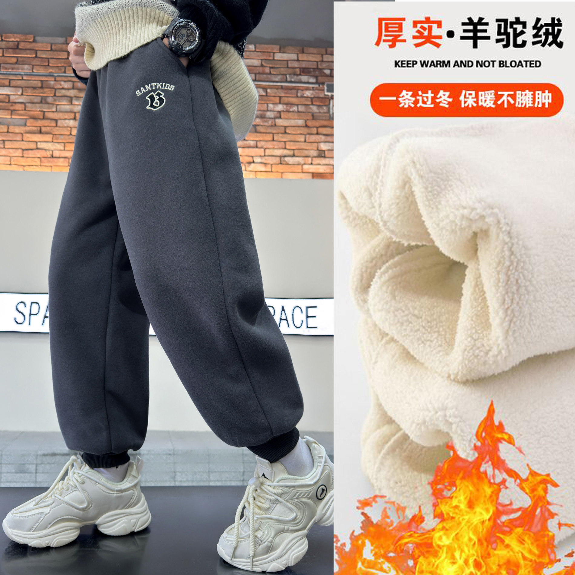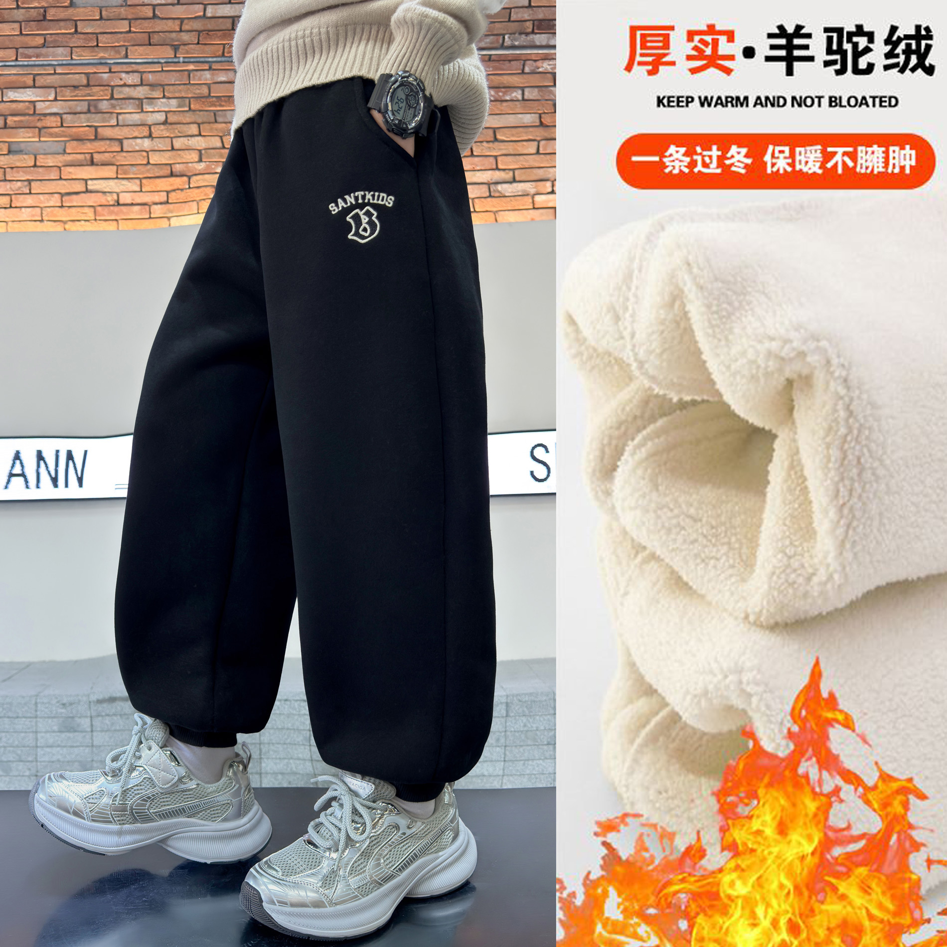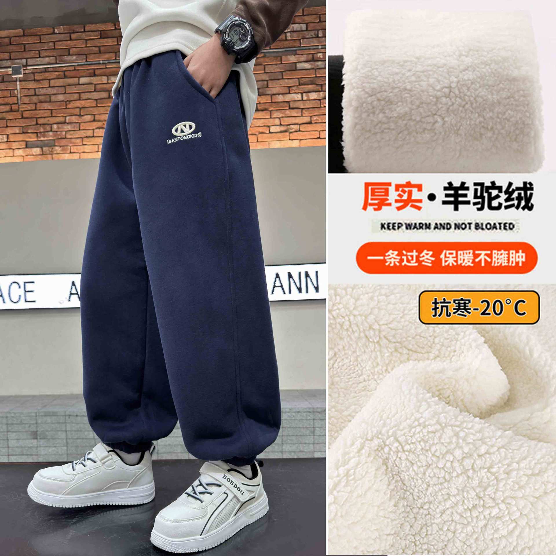 소년의 겨울 원피스 알파카 기모 바지 2024 대형 어린이 두꺼운 바지 어린이 겨울 느슨한 면 바지스토어 가기