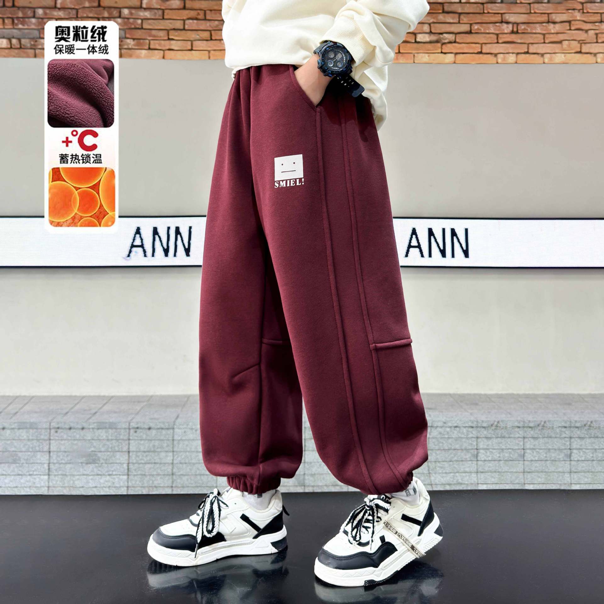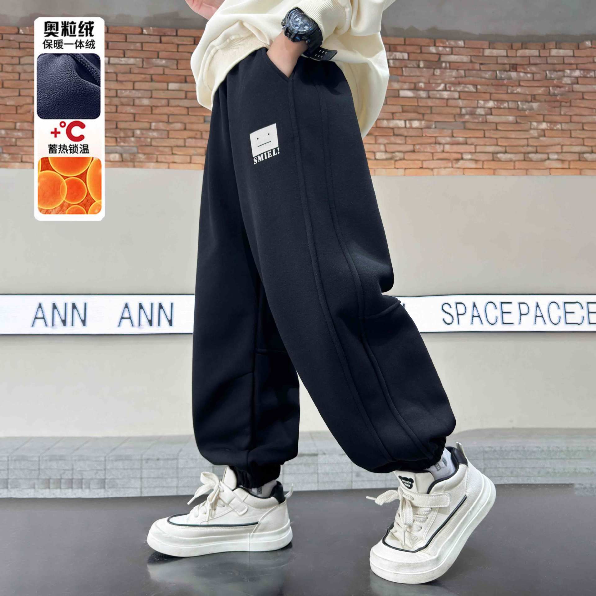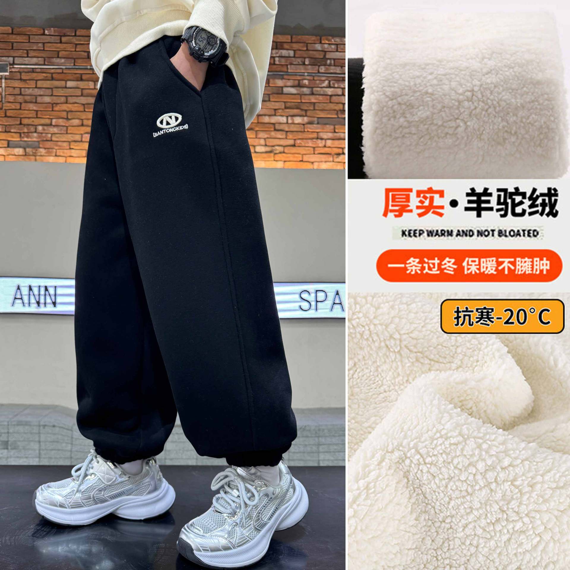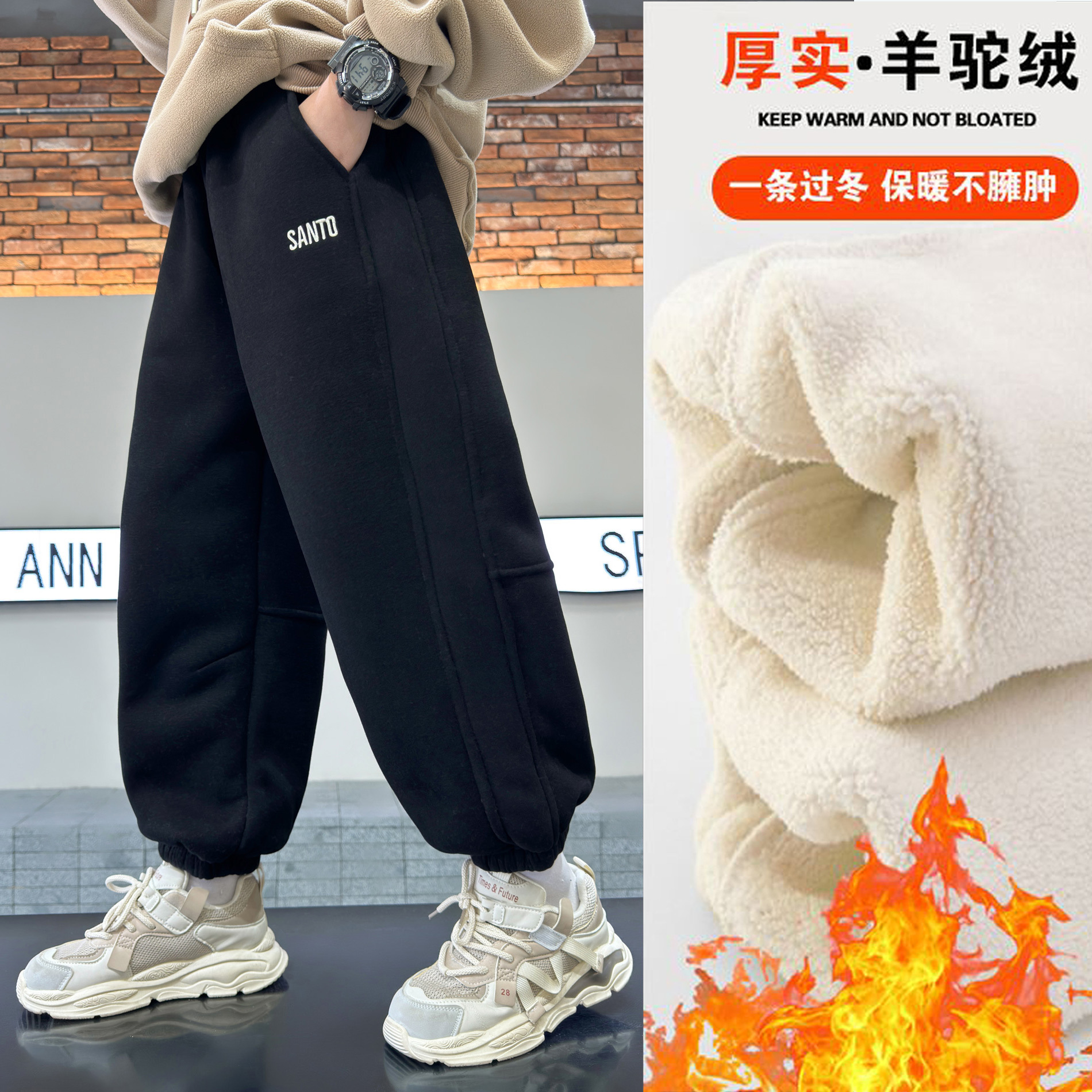 소년의 겨울 원피스 알파카 기모 바지 2024 대형 어린이 두꺼운 바지 어린이 겨울 느슨한 면 바지스토어 가기
