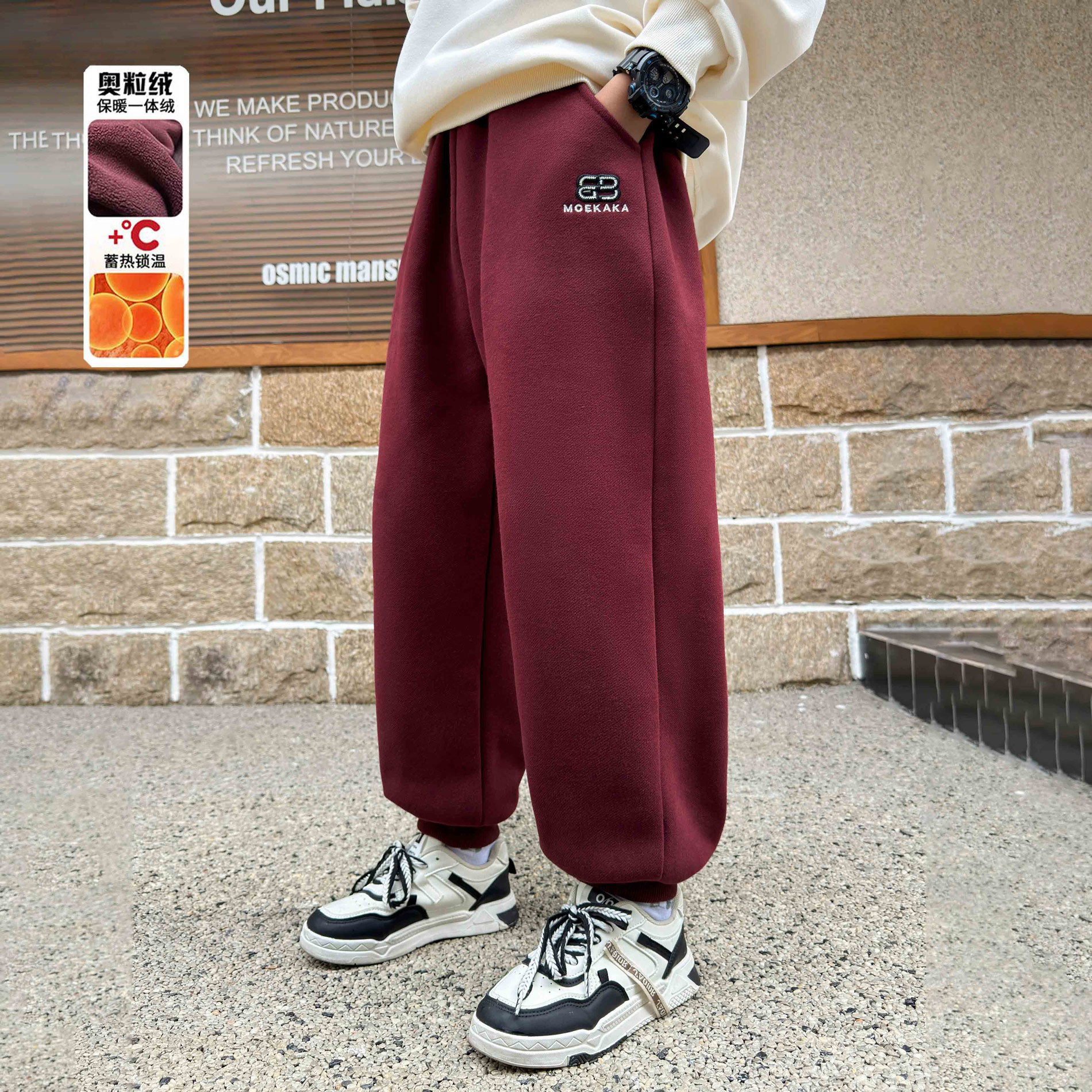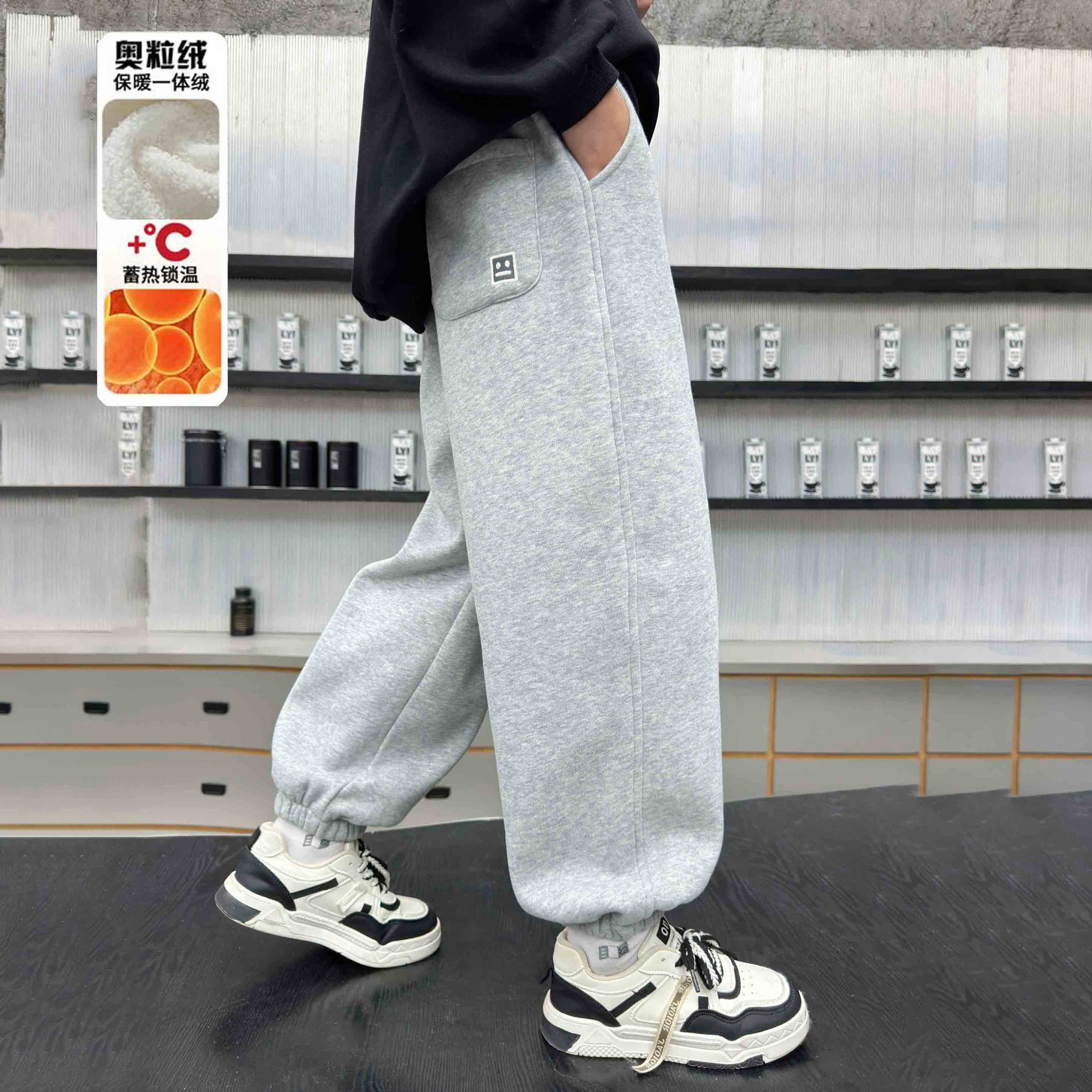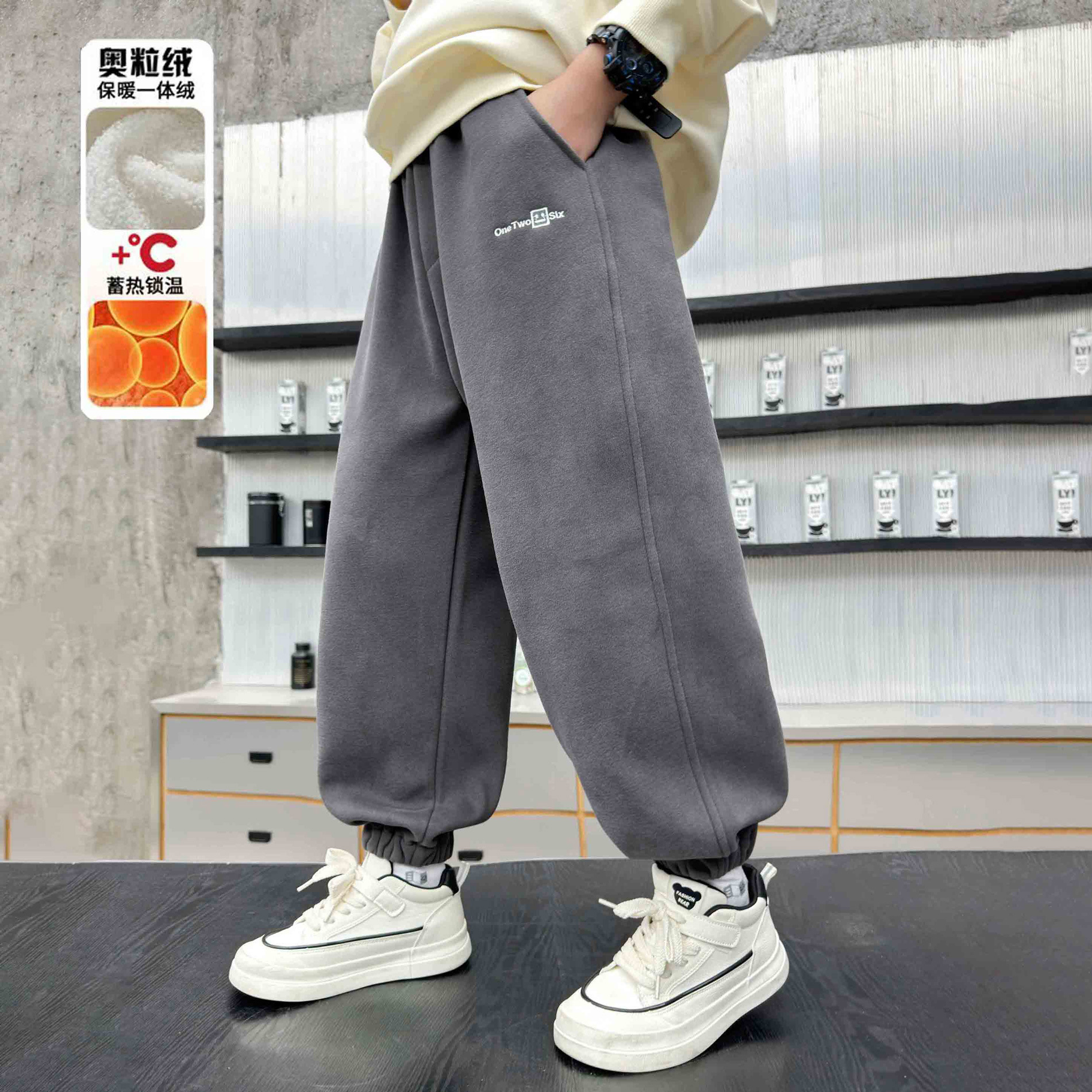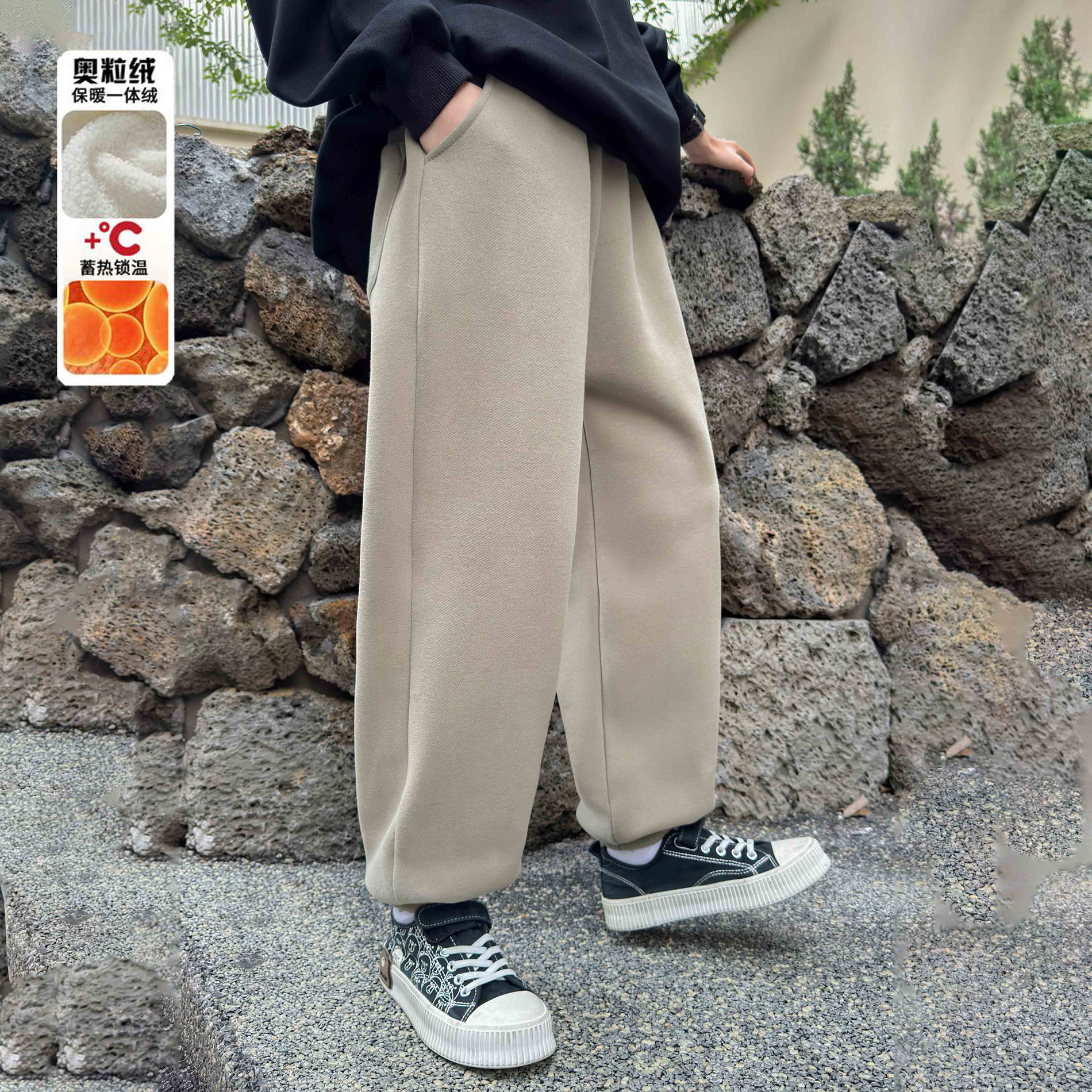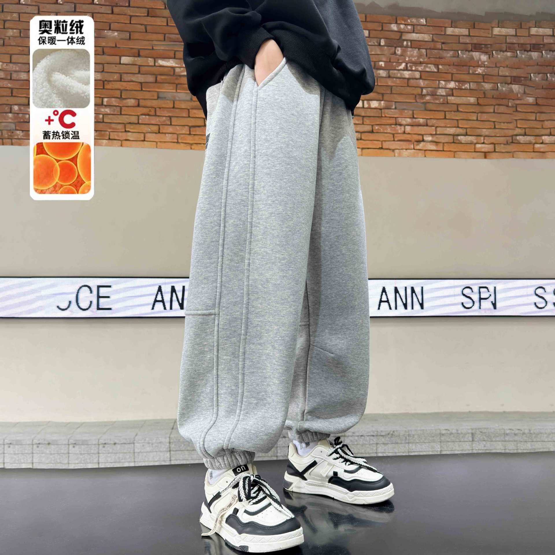 소년의 겨울 원피스 알파카 기모 바지 2024 대형 어린이 두꺼운 바지 어린이 겨울 느슨한 면 바지스토어 가기