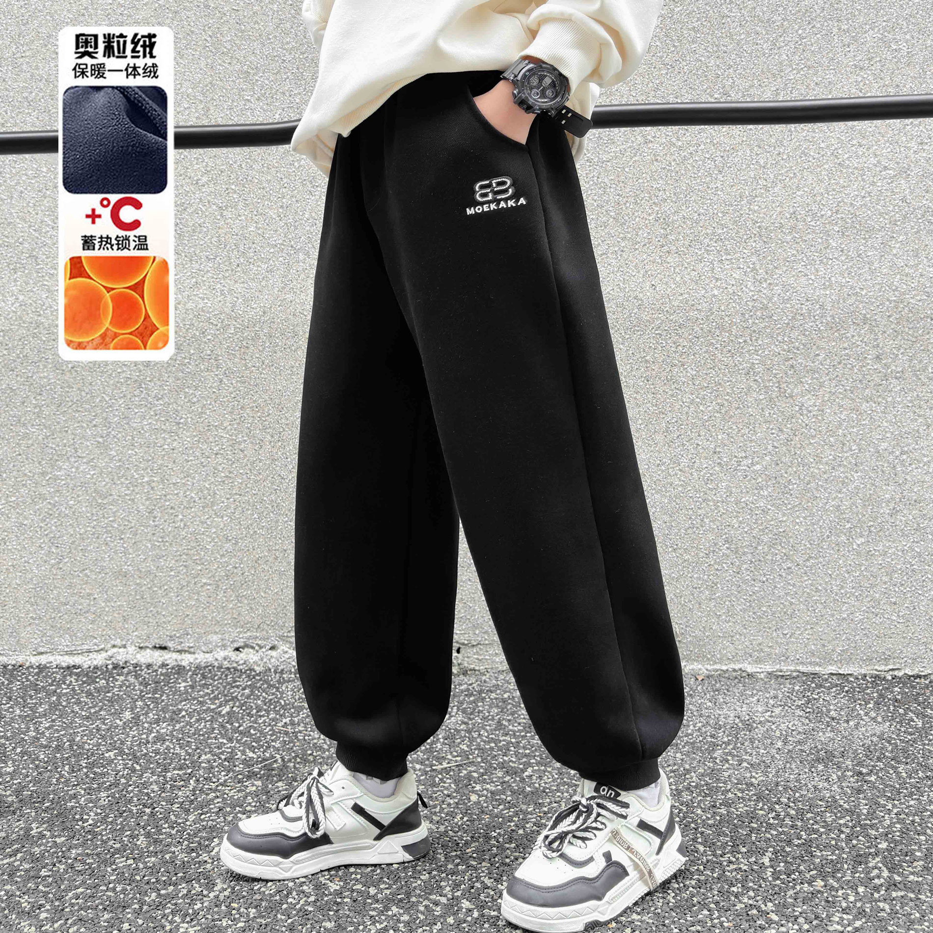 소년의 겨울 원피스 알파카 기모 바지 2024 대형 어린이 두꺼운 바지 어린이 겨울 느슨한 면 바지