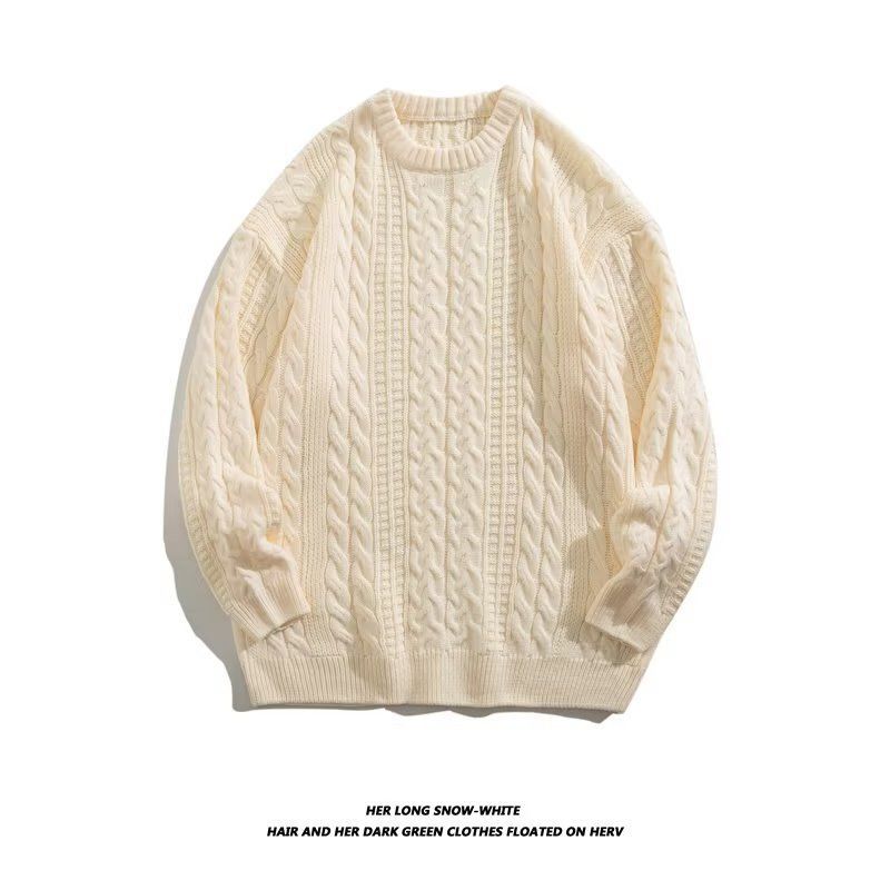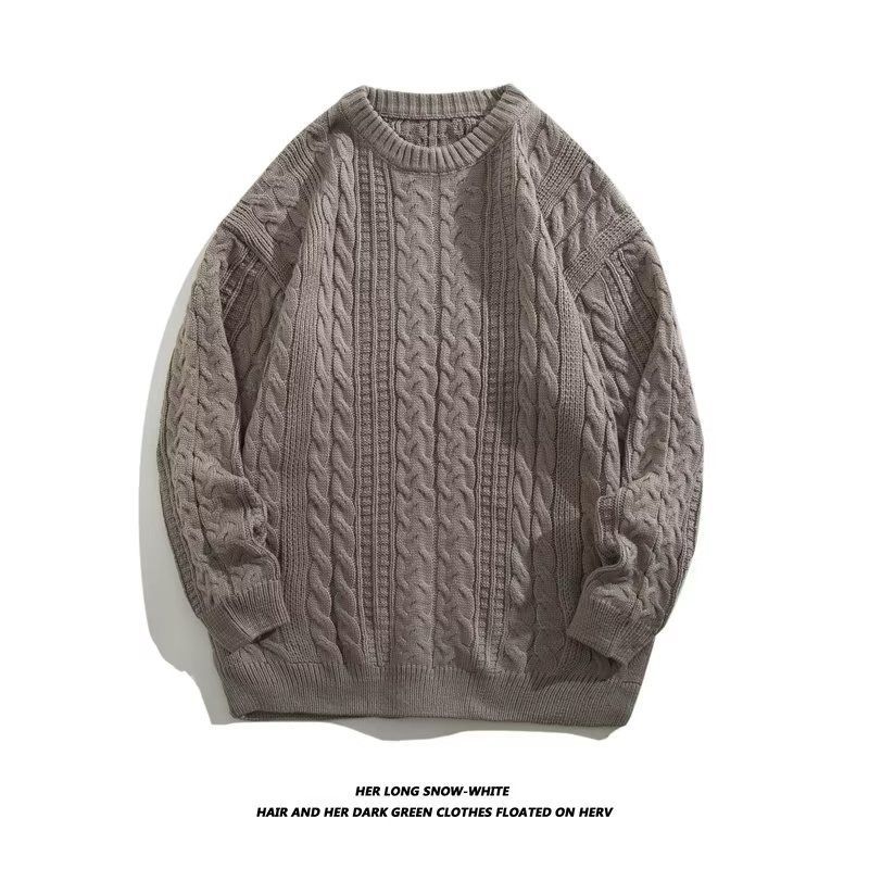 라운드 넥 트위스트 스웨터 남자의 가을과 겨울 일본 스타일 유행 브랜드 느슨한 게으른 스타일 하이 스트리트 유행 단색 풀오버 스웨터