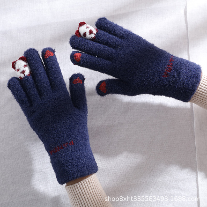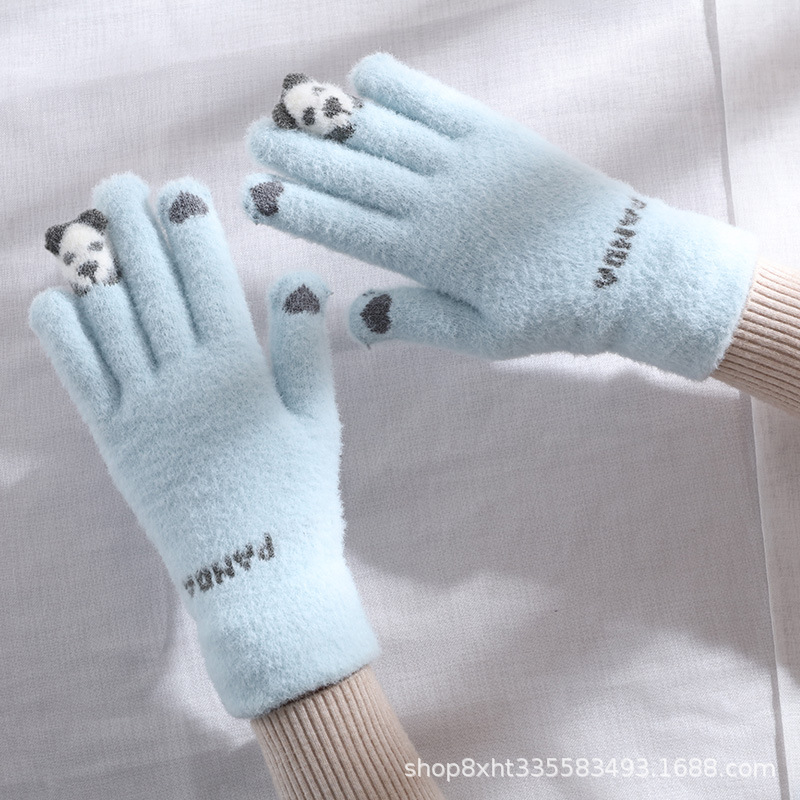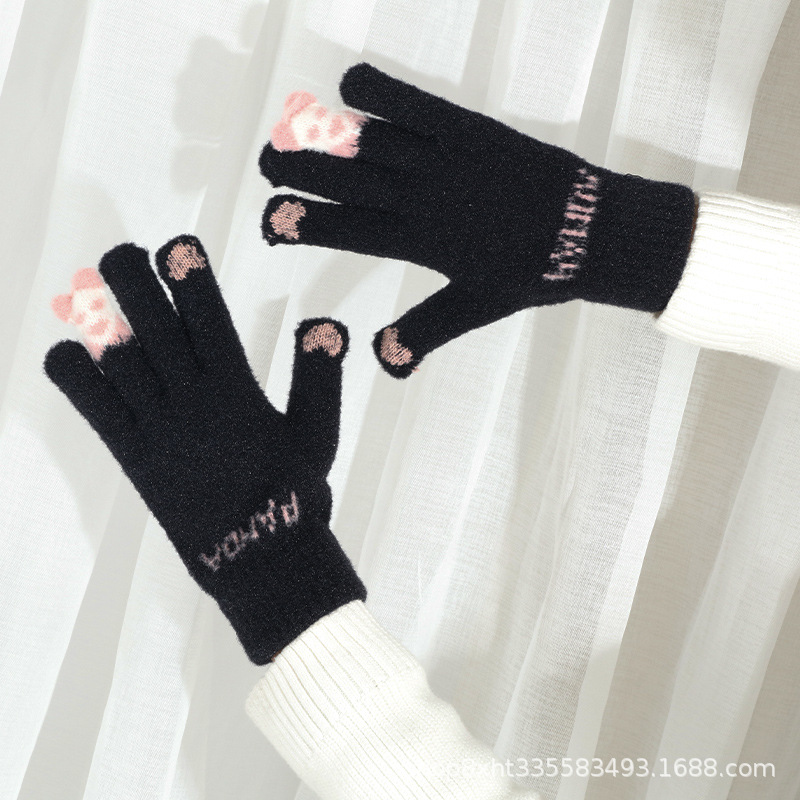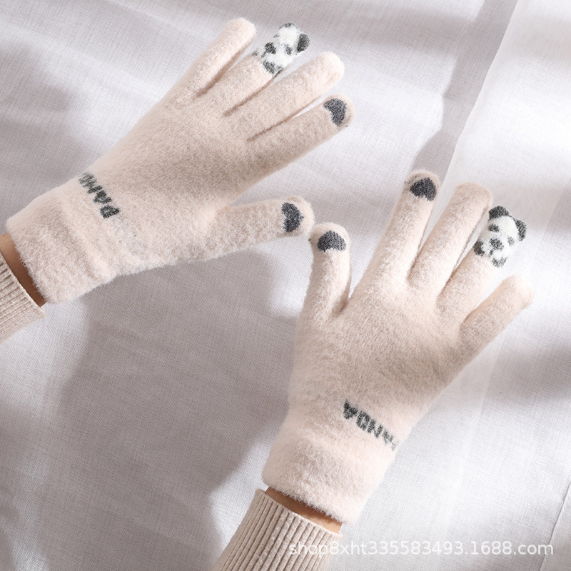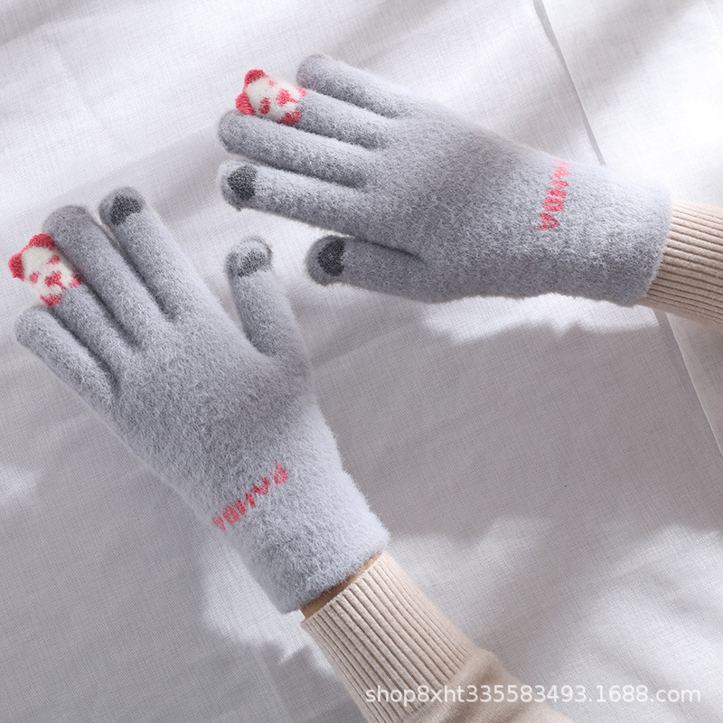 핑거 베어 플러시 따뜻한 장갑 여성의 가을과 겨울 터치 스크린 타기 귀여운 학생 양모 짠 방한 장갑
