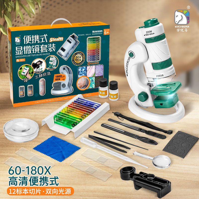 Xueyoma 과학 실험 현미경 세트 1200 시간 홈 초등학교 생화학 전자 어린이 퍼즐