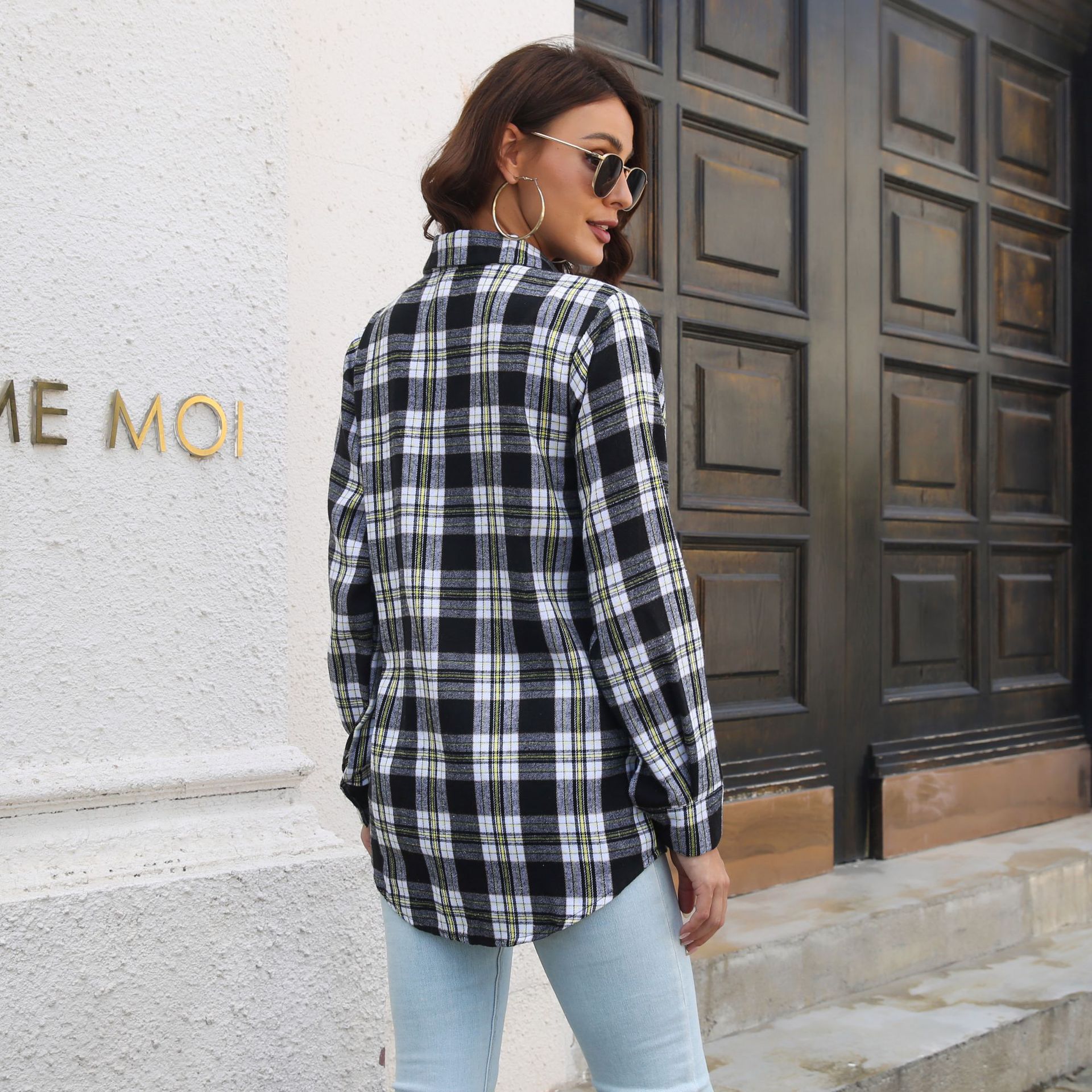 격자 무늬 셔츠 칫솔질 긴 소매 중간 길이의 느슨한 셔츠 여성 최고 신상품 인 아마존 유럽 및 미국 국경 여성 의류스토어 가기