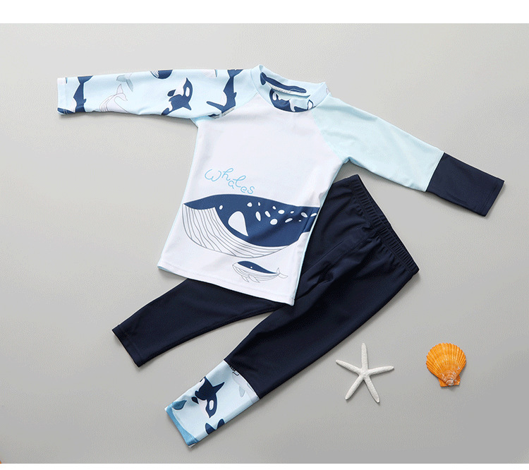 어린이 스플릿 수영복 남아 긴 소매 바지 태양 방지 속건 학생 플러스 사이즈 아기 수영 세트