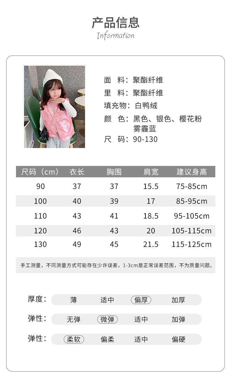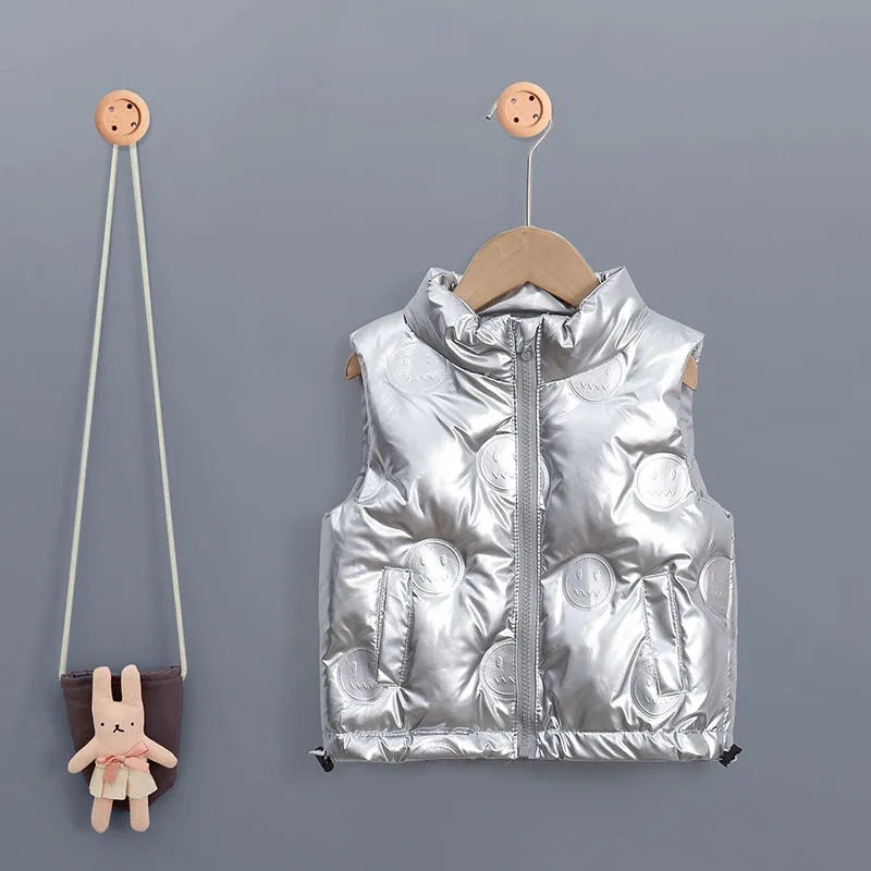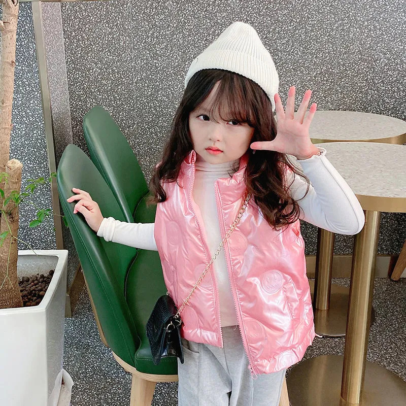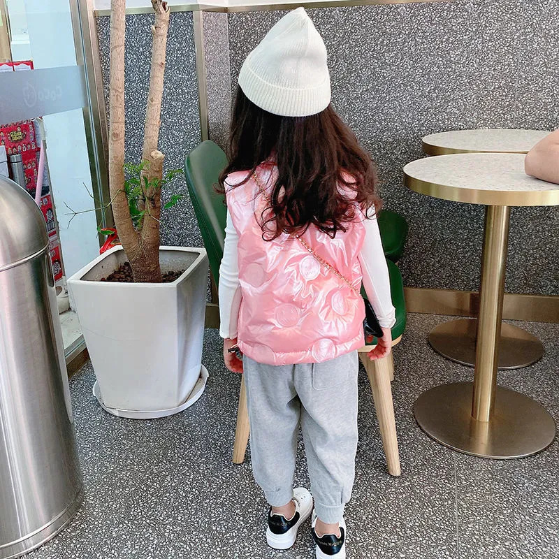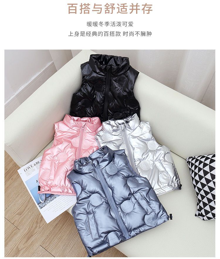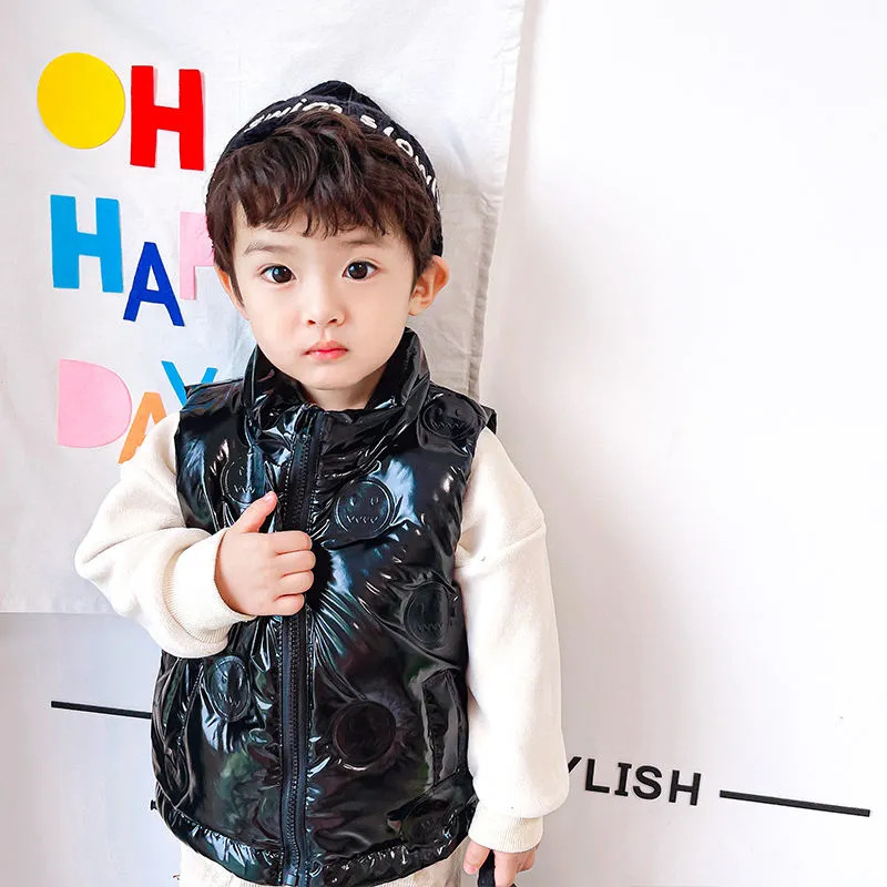 소년 소녀 다운 조끼 두꺼운 아기 소녀 다운 아우터 브라이트 엠보싱 외국 스타일 따뜻한 칼라 조끼 트렌디