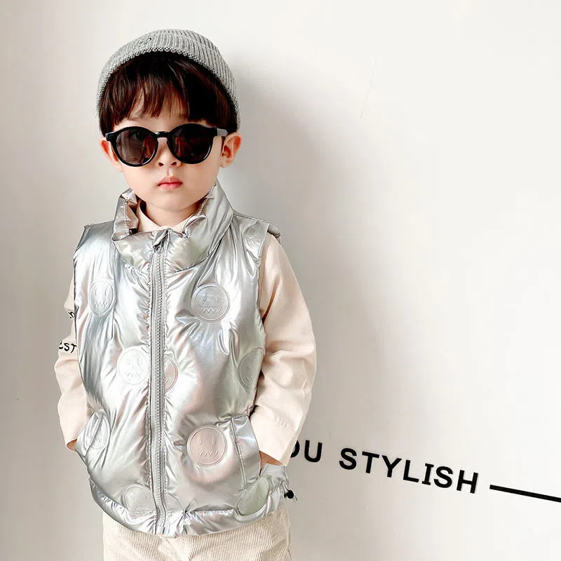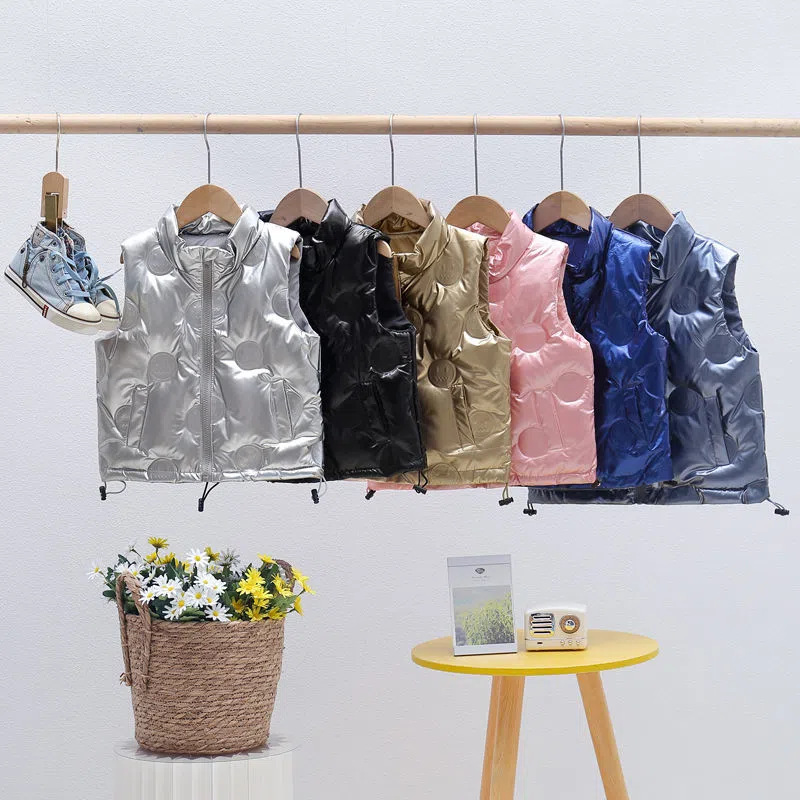 소년 소녀 다운 조끼 두꺼운 아기 소녀 다운 아우터 브라이트 엠보싱 외국 스타일 따뜻한 칼라 조끼 트렌디스토어 가기