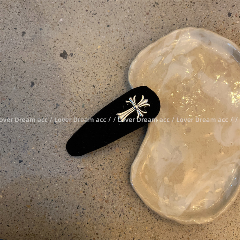 유럽과 미국의 Ins 스타일 빈티지 크로스 블랙 잠금 BB 헤어핀 달콤한 쿨 올 매치 뱅 클립 패션 헤드웨어 헤어 액세서리스토어 가기