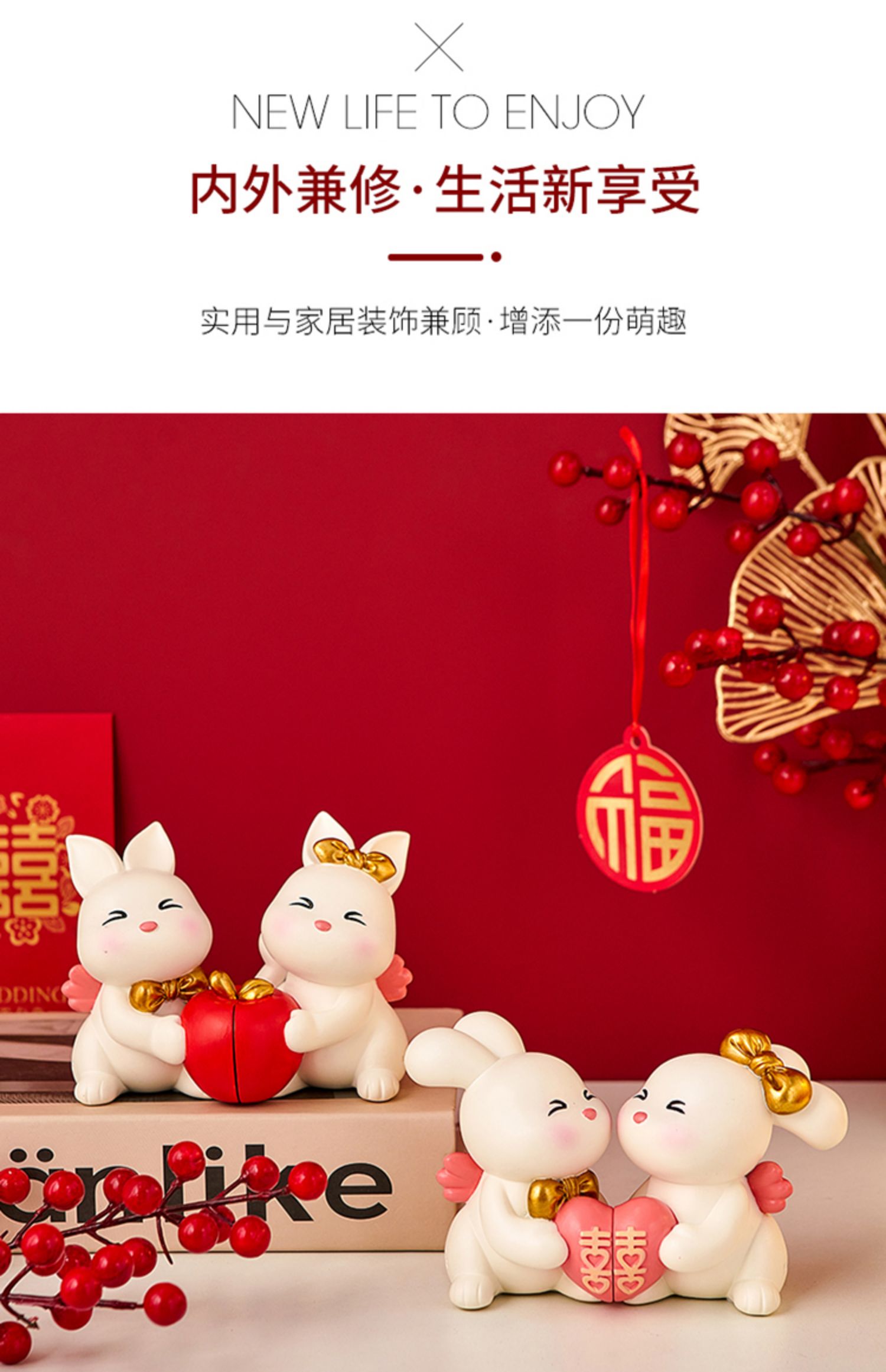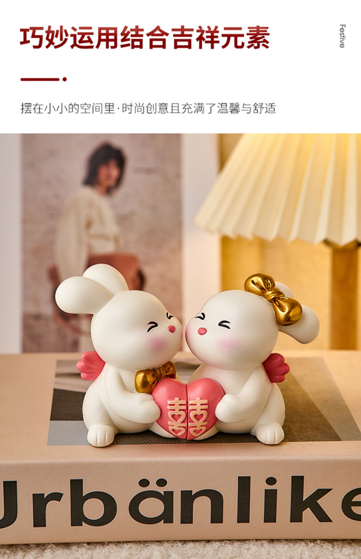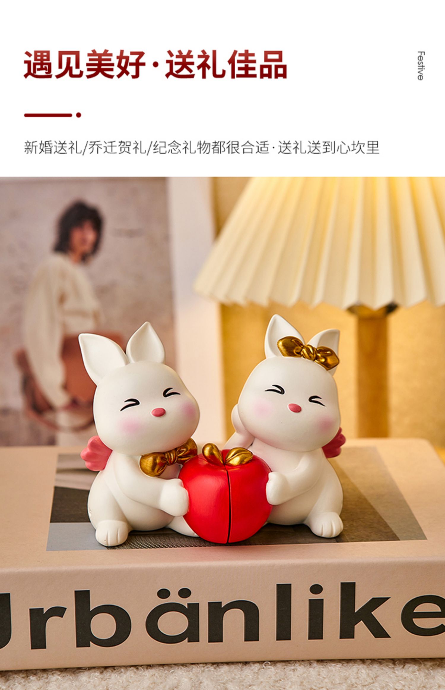 크리 에이 티브 커플 토끼 장식품 결혼 선물 한 쌍의 여자 친구가 새로운 가정 거실 장식을 보내기 위해 약혼