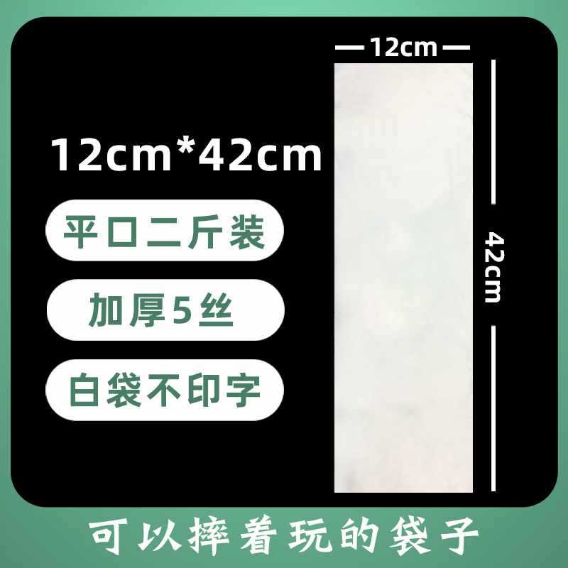 • 12*42 1.0kg 인쇄되지 않은 편평한 입 흰색 가방, 두꺼운 5선, 500개*식품 등급 PE-전체 사양