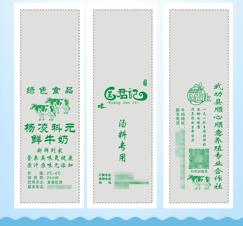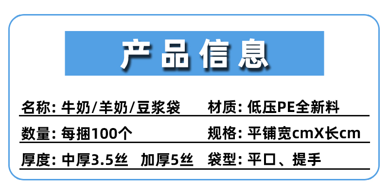 • [저렴] 10*34 0.5kg 팩 핸드 프린트 작은 문자 신선한 염소 우유 중간 두께 3.5 실크 500개 * 식품 등급 PE - 전체 사양