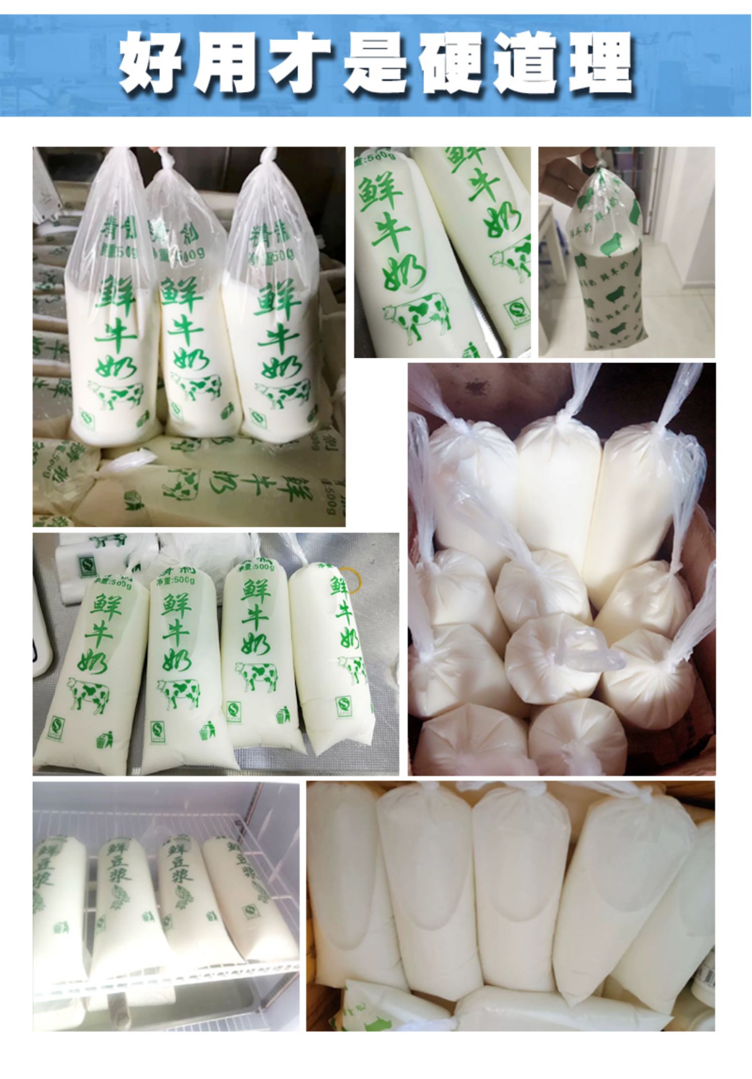 • 10*34 0.5kg 플랫 입 인쇄 큰 문자 신선한 염소 우유 두꺼운 5선 500개 * 식품 등급 PE-완전한 사양