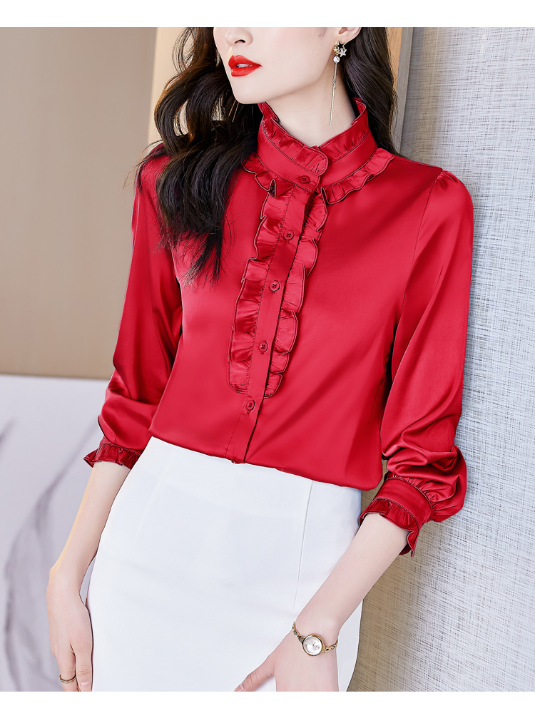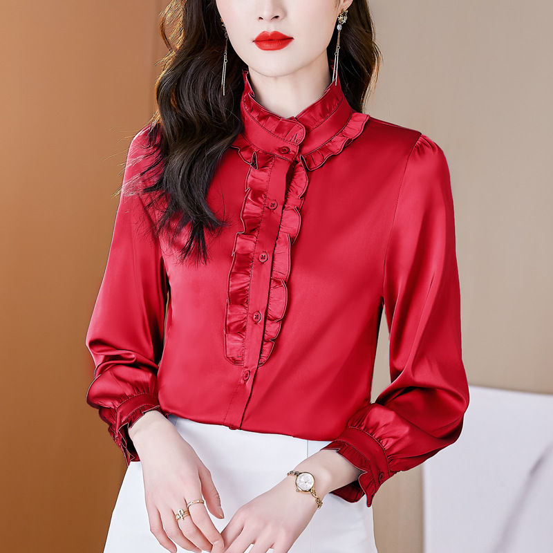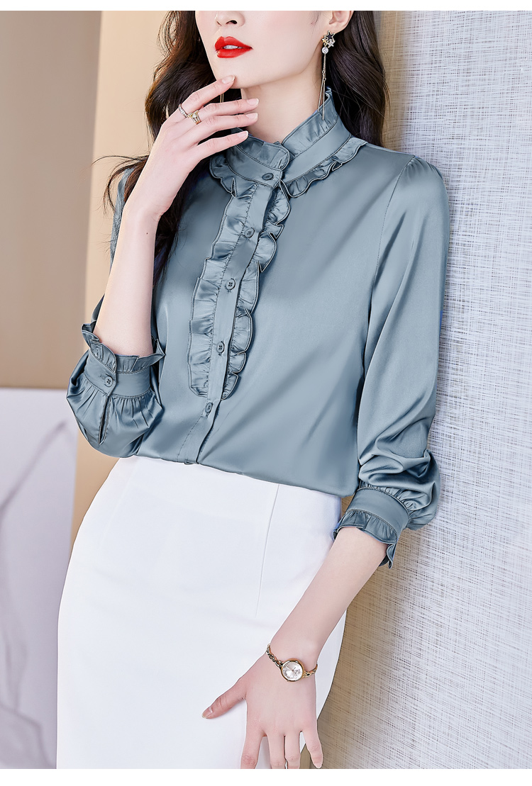 패션 이른 가을 탑 디자인 감각 뽕나무 실크 럭셔리 셔츠 여성의 긴 소매 작은 셔츠 새로운 2022 우아한 셔츠 유행스토어 가기