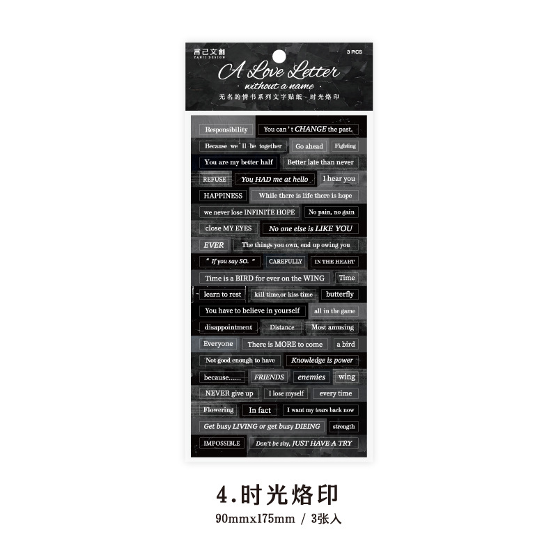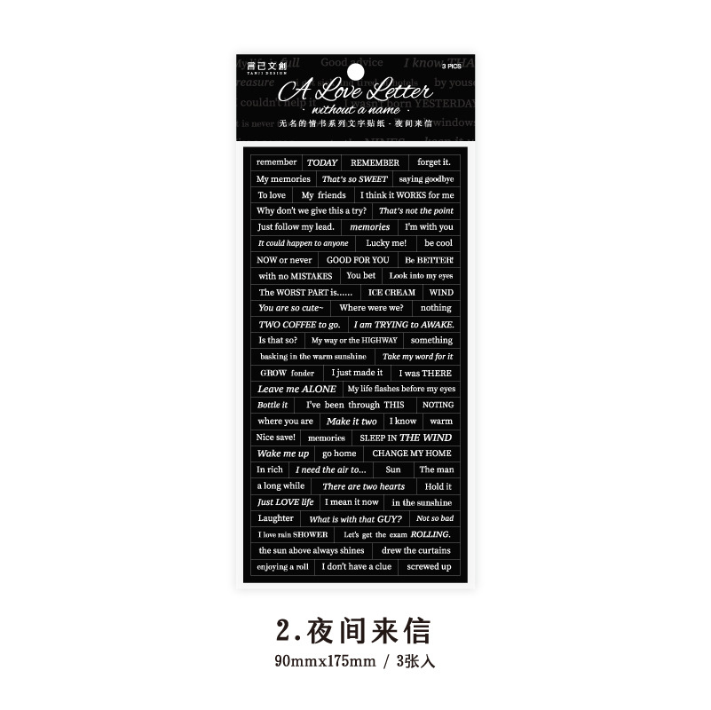 Yan Ji 텍스트 스티커 이름없는 러브 레터 시리즈 소금 시리즈 간단한 영어 패턴 손 계정 장식 재료 3
