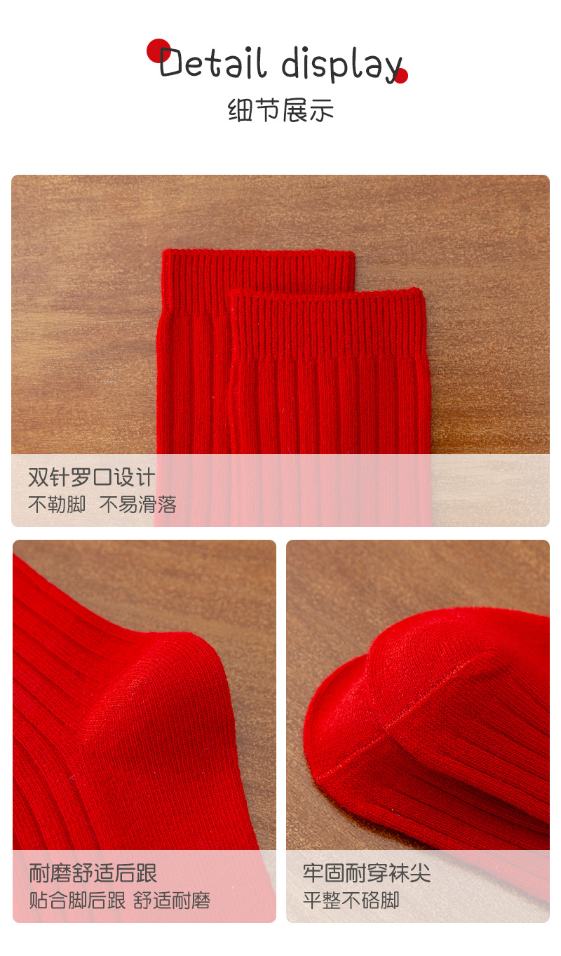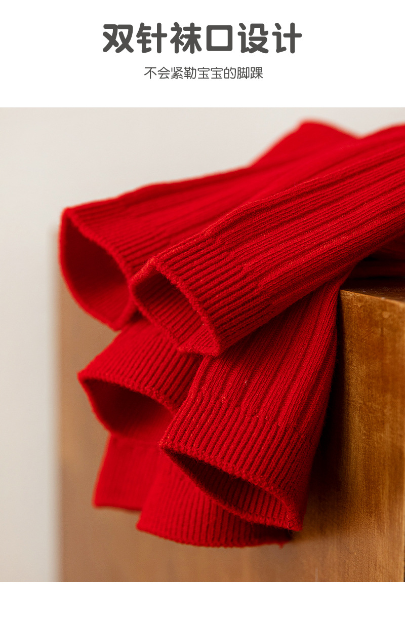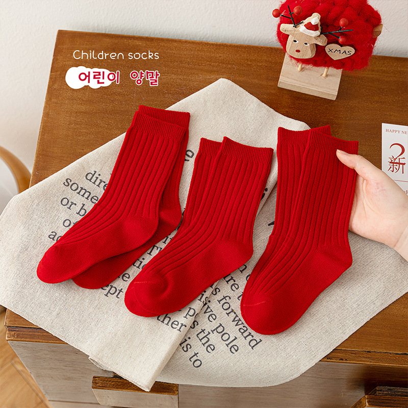 어린이 양말 도매 새해 빨간 양말 더블 바늘 스트립 소년과 소녀 중반 종아리 양말 출생 년 빨간 양말 면화