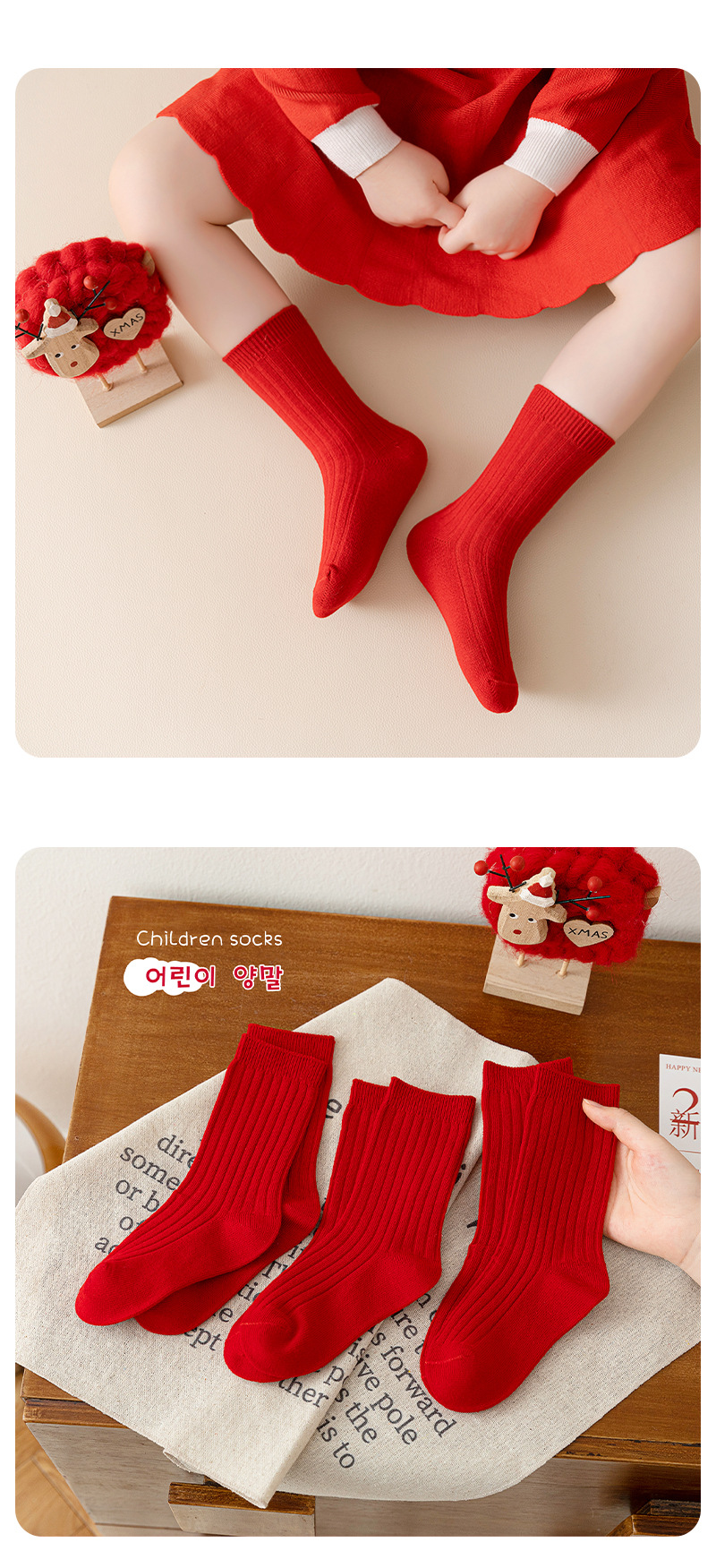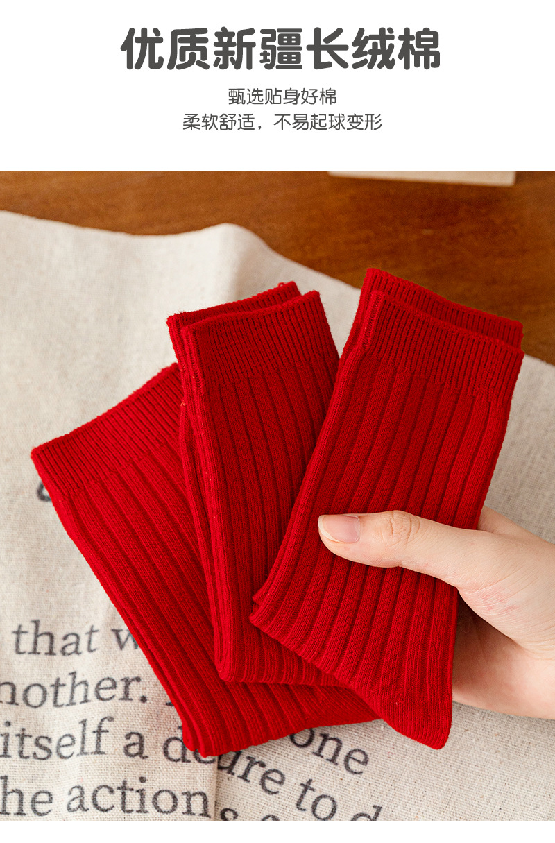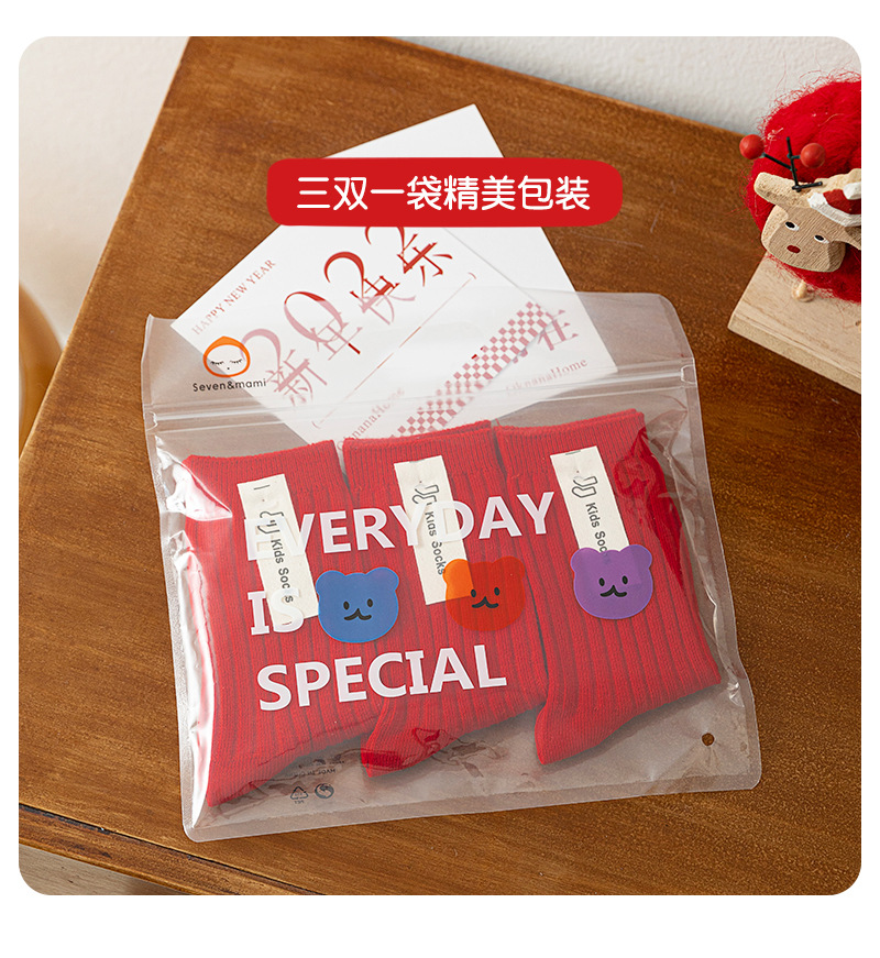 어린이 양말 도매 새해 빨간 양말 더블 바늘 스트립 소년과 소녀 중반 종아리 양말 출생 년 빨간 양말 면화스토어 가기