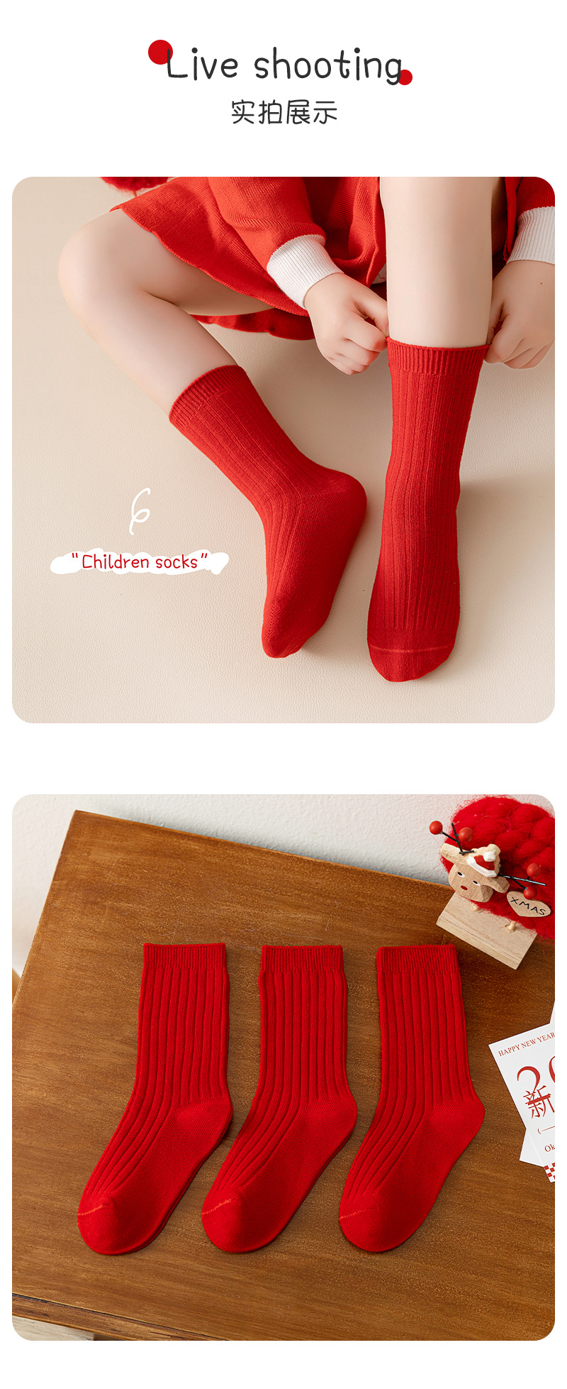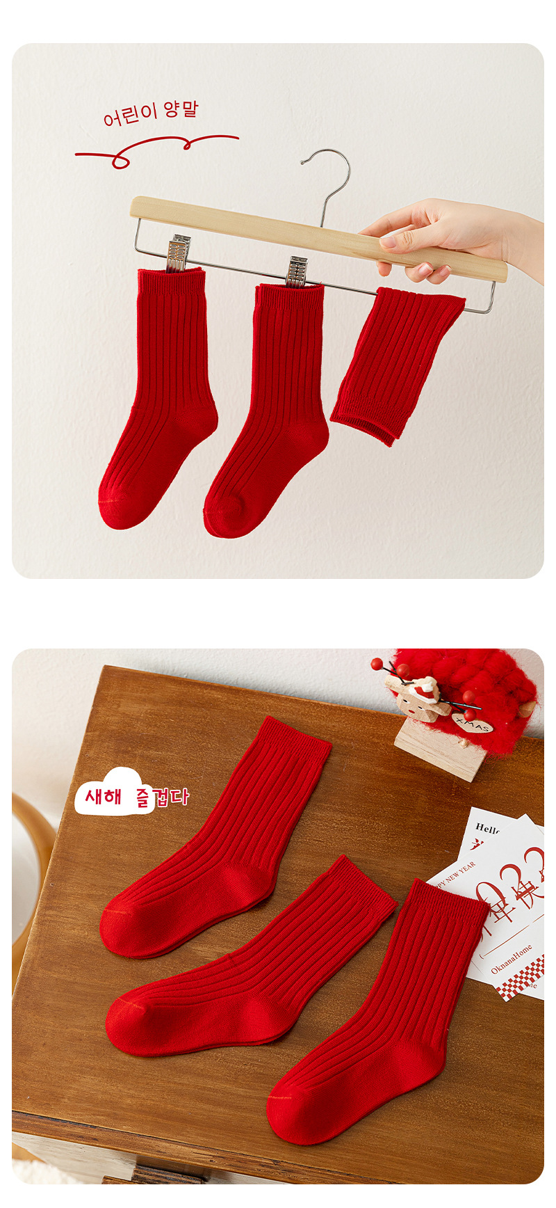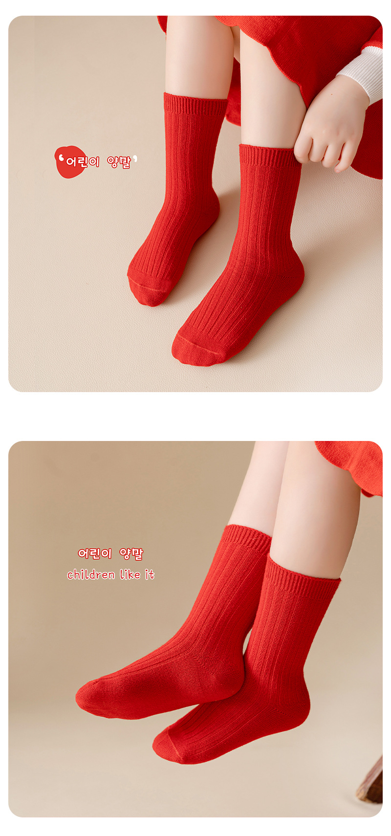 어린이 양말 도매 새해 빨간 양말 더블 바늘 스트립 소년과 소녀 중반 종아리 양말 출생 년 빨간 양말 면화스토어 가기