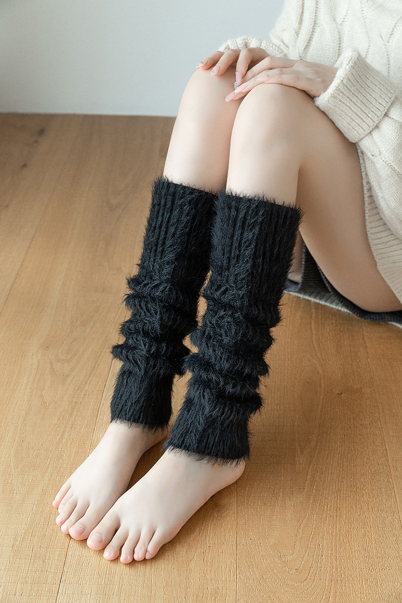 가을과 겨울 두꺼운 깃털 원사 양말 캐시미어 쌓인 양말 한국 여성용 흰색 무릎 높이 양말 따뜻한 다리 양말 부츠 커버