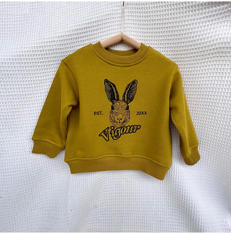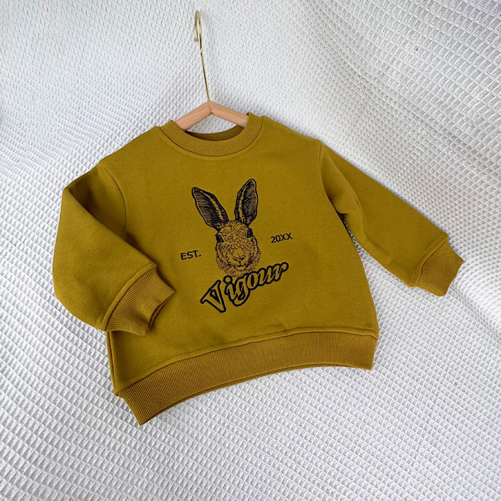 가을과 겨울 세트 여아 토끼 머리 자수 운동복 새로운 두꺼운 울 탑 빈티지 격자 무늬 바지 유행 투피스 세트
