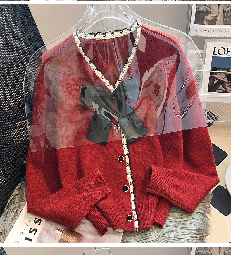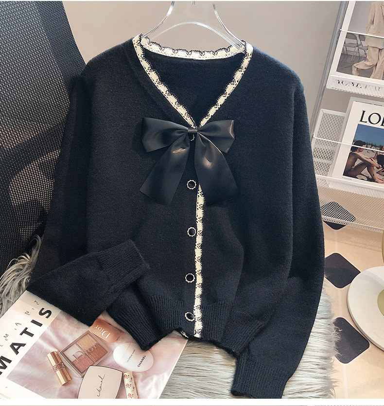 크로스 보더 샤넬 스타일 코트 여성의 가을과 겨울 긴 소매 코트 두꺼운 패션 서양 스타일 레이스 니트 스웨터 카디건스토어 가기