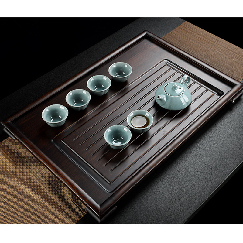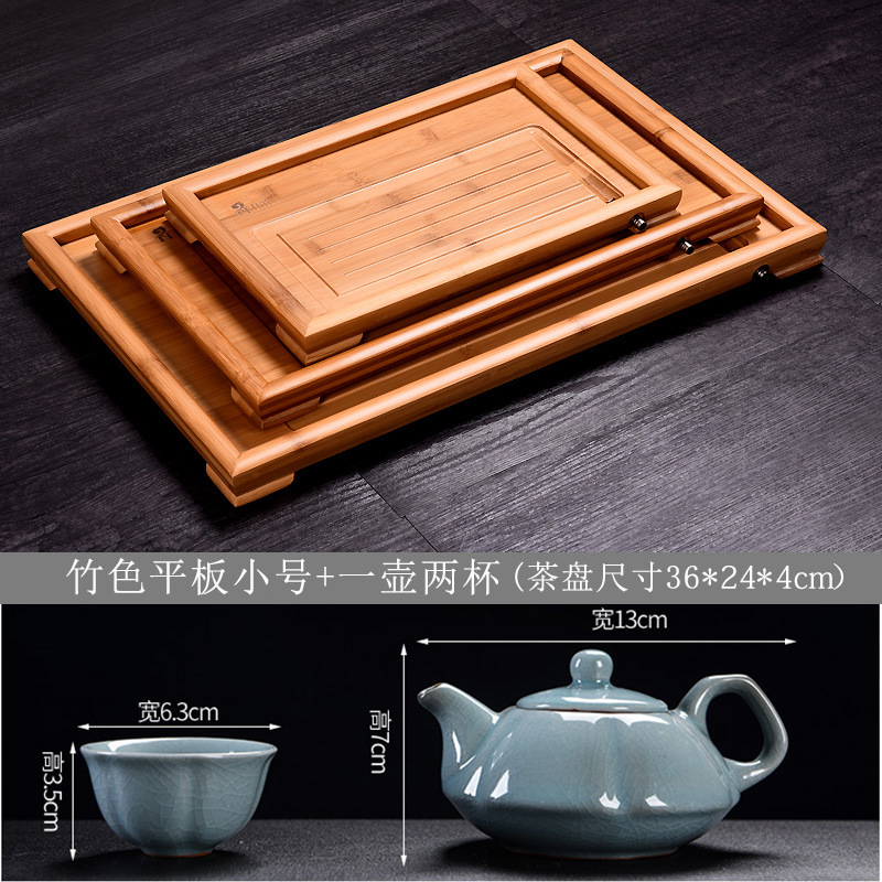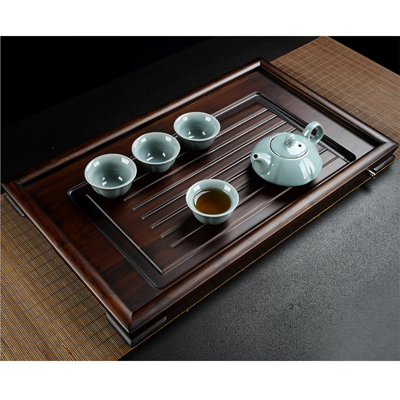 중국 스타일 대나무 Jiuzhu 자동 배수 티 트레이 평면 고대 차 자연 색 복고풍 건조 버블 트레이 티 테이블 대나무 차 세트