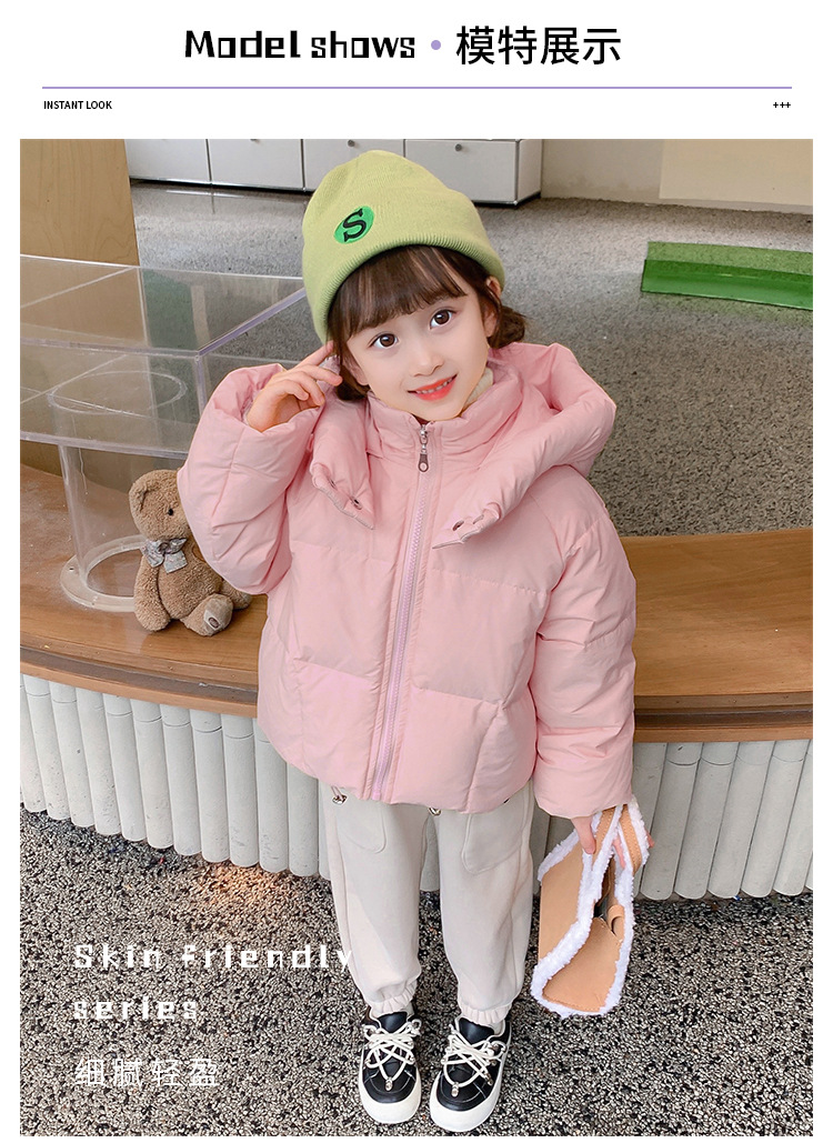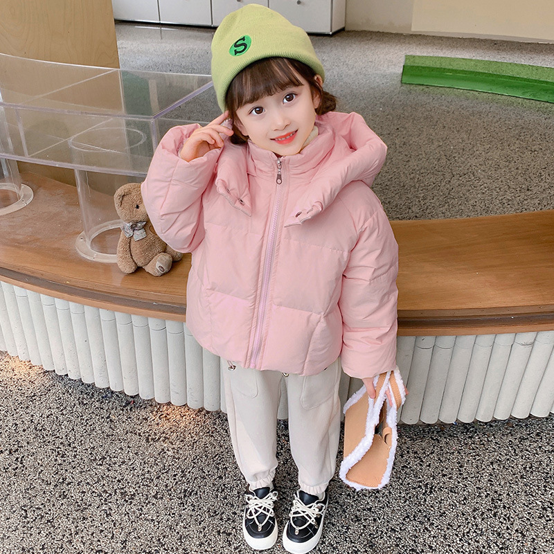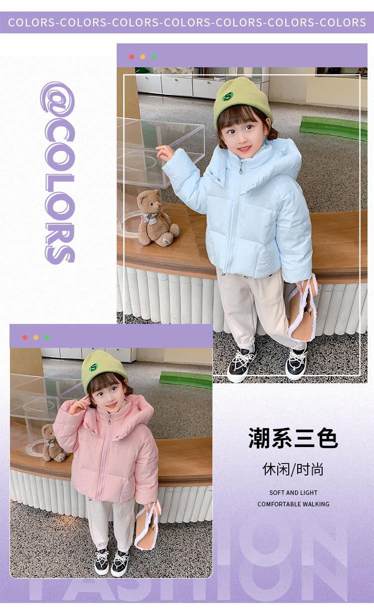 소녀의 다운 재킷 2022 겨울 새로운 빵 의류 웨스턴 스타일 소녀의 후드 캔디 컬러 다운 재킷스토어 가기