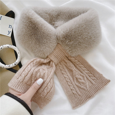 세련된 게으른 스타일 게으른 크로스 니트 스카프 가을과 겨울 따뜻한 모피 한국 스타일 모조 모피 플러시 스카프 여성용