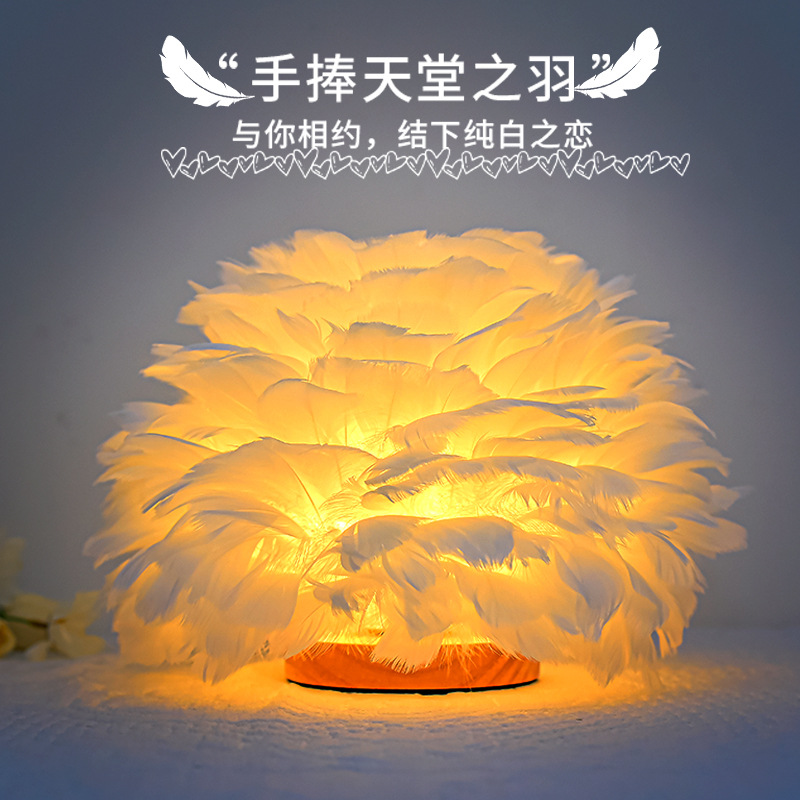 소녀의 따뜻하고 낭만적 인 현대 충전 야간 조명 수면 깃털 테이블 램프 북유럽 꿈 단단한 나무 침실 침대 옆 램프스토어 가기